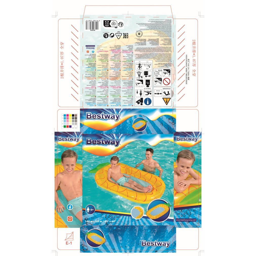 BESTWAY Bestway 43644 Dmuchany materac plażowy Ananas 1,86m x 1,12m
