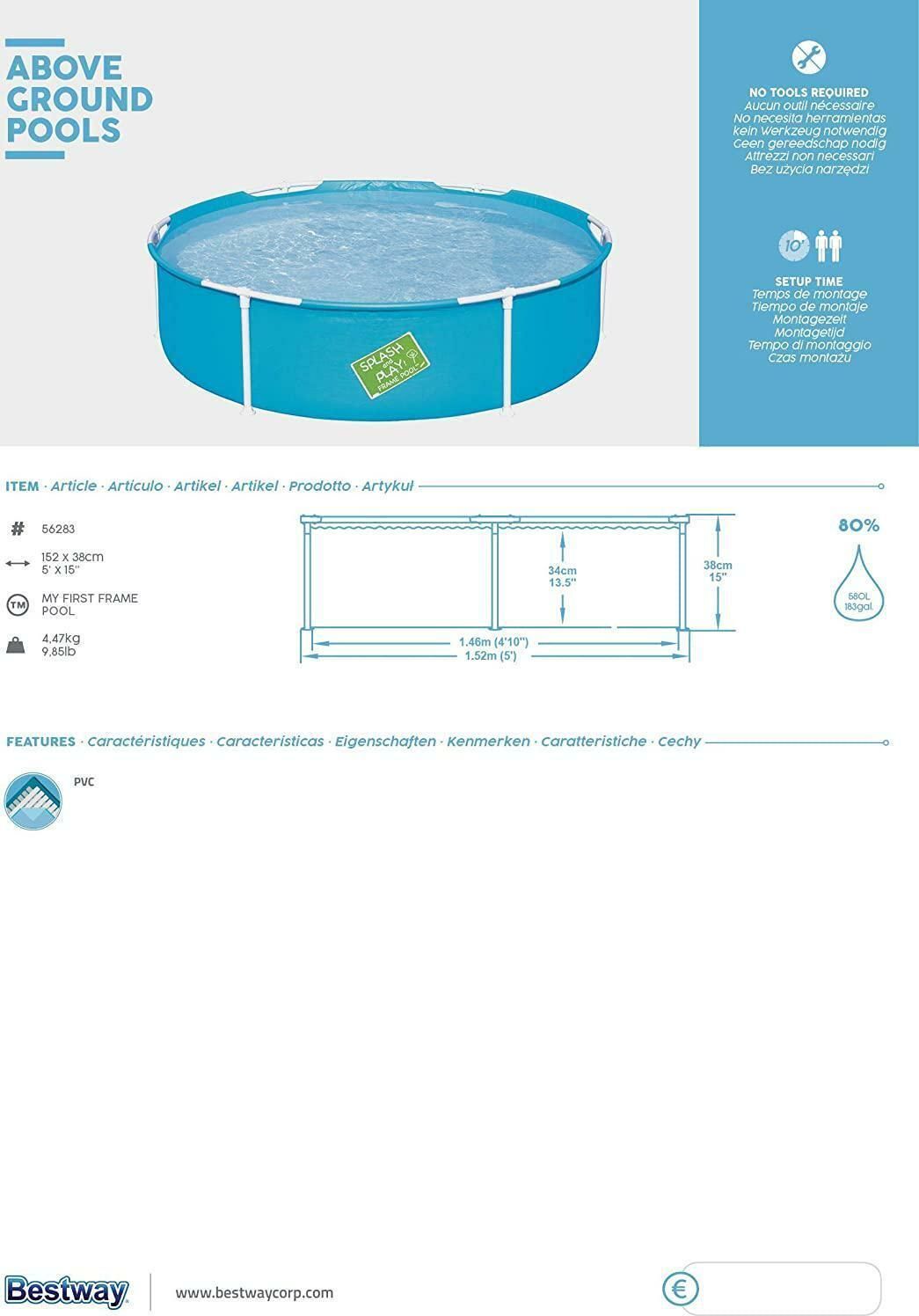 Bestway Bestway 56283 My First Frame Pool Kinderpool Rund Blau �580 Liter 152 x 38 cm