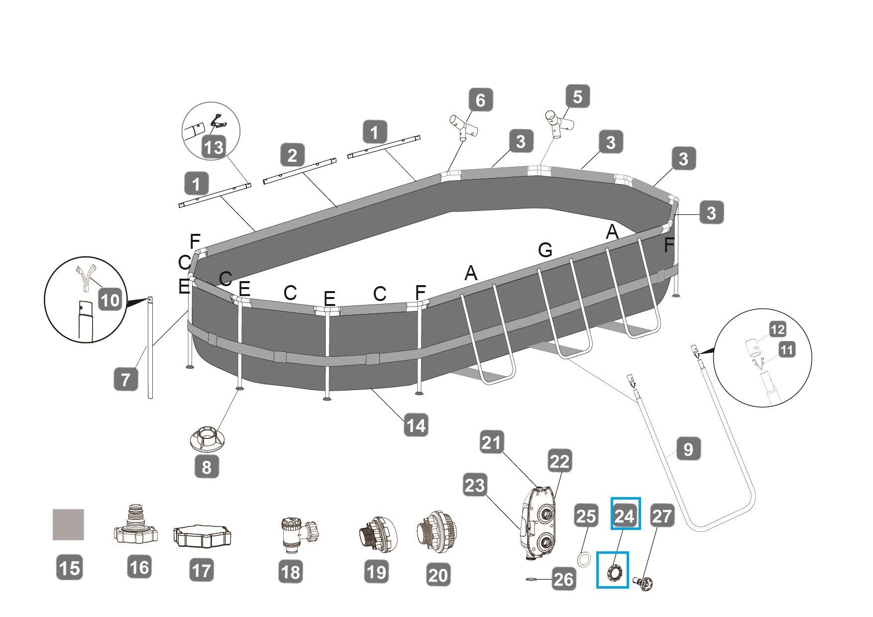 Bestway Bestway® Ersatzteil Flanschmutter für Sieböffnung (grau / Ø 38 mm) und Power Steel