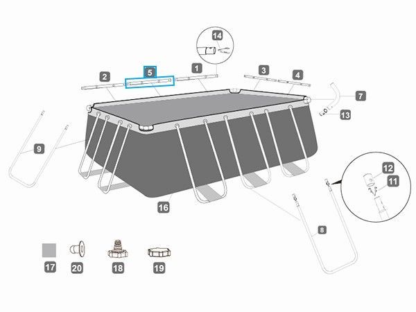 Bestway Bestway® Ersatzteil Horizontale Poolstange E (grau) für ausgewählte Power Steel™