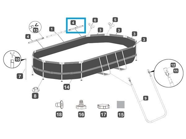 Bestway Bestway® Ersatzteil Horizontale Stange D (braun) für ausgewählte Power Steel™