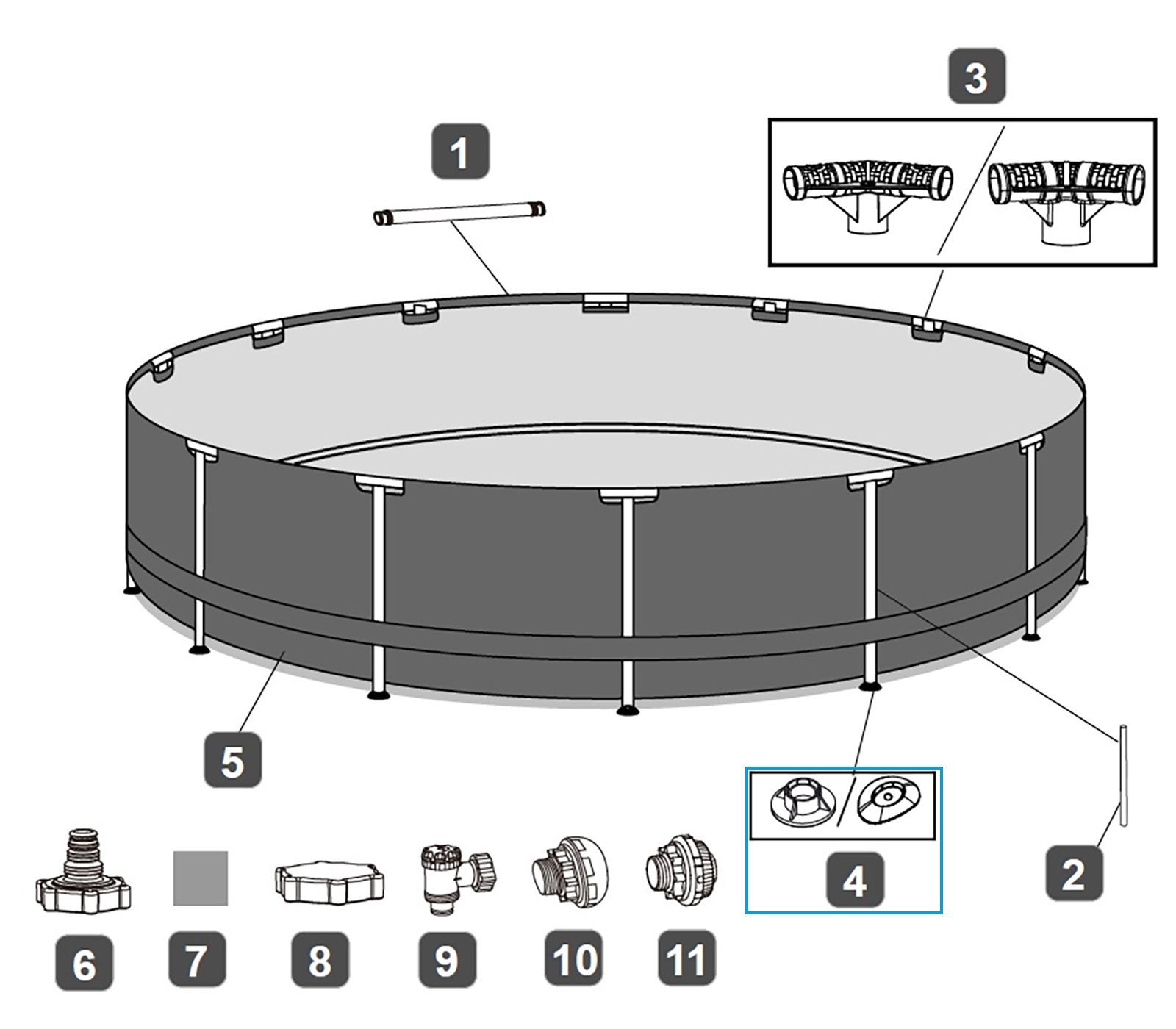 Bestway Bestway® Ersatzteil-SET Standfuß (grau/ 3 Stück) für Steel Pro MAX™ Pools Ø 549 x