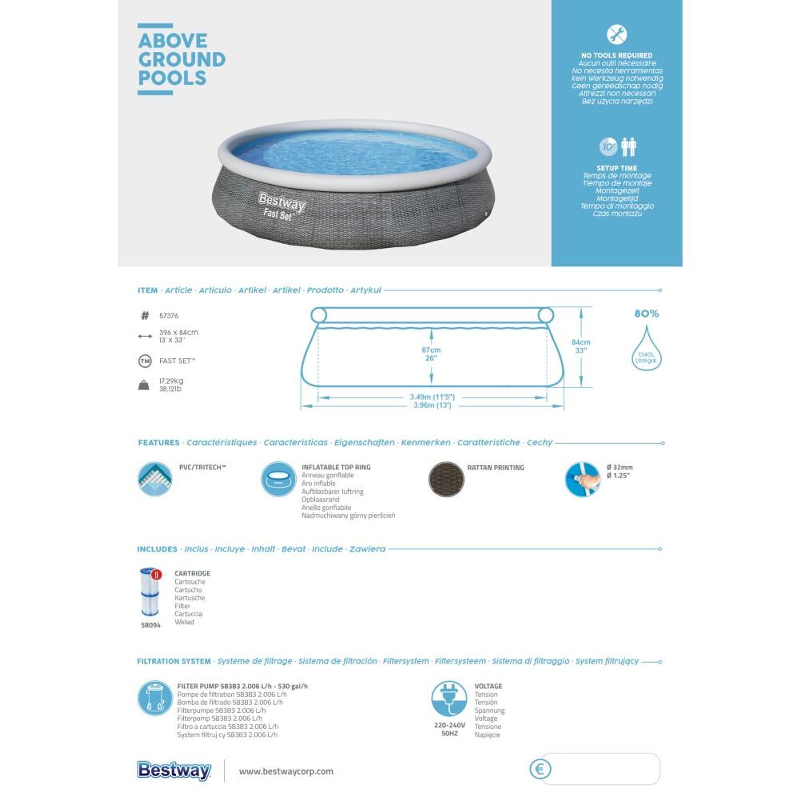 Bestway® Bestway Fast Set Swimmingpool Schwimmbecken Baden Sommer Wasser Fast-Set-Pool