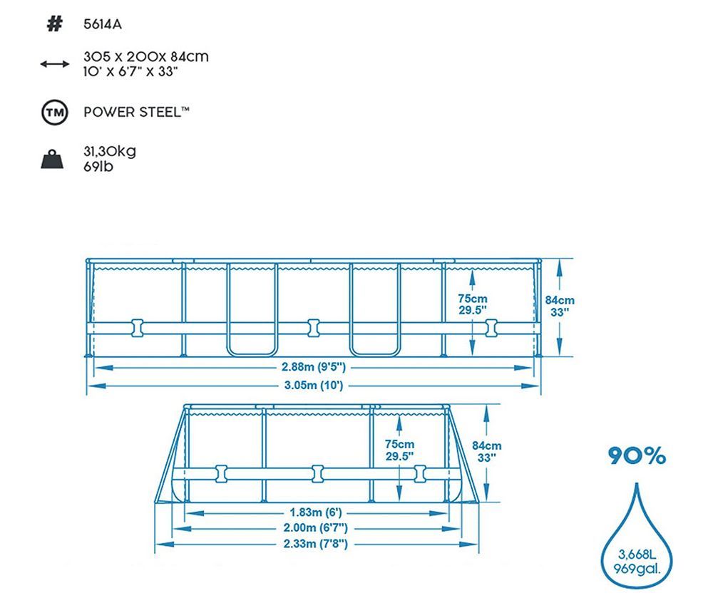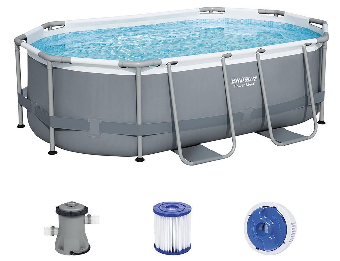 Bestway Bestway Power Steel Frame Pool-Set mit Filterpumpe 305x200x84 cm grau oval