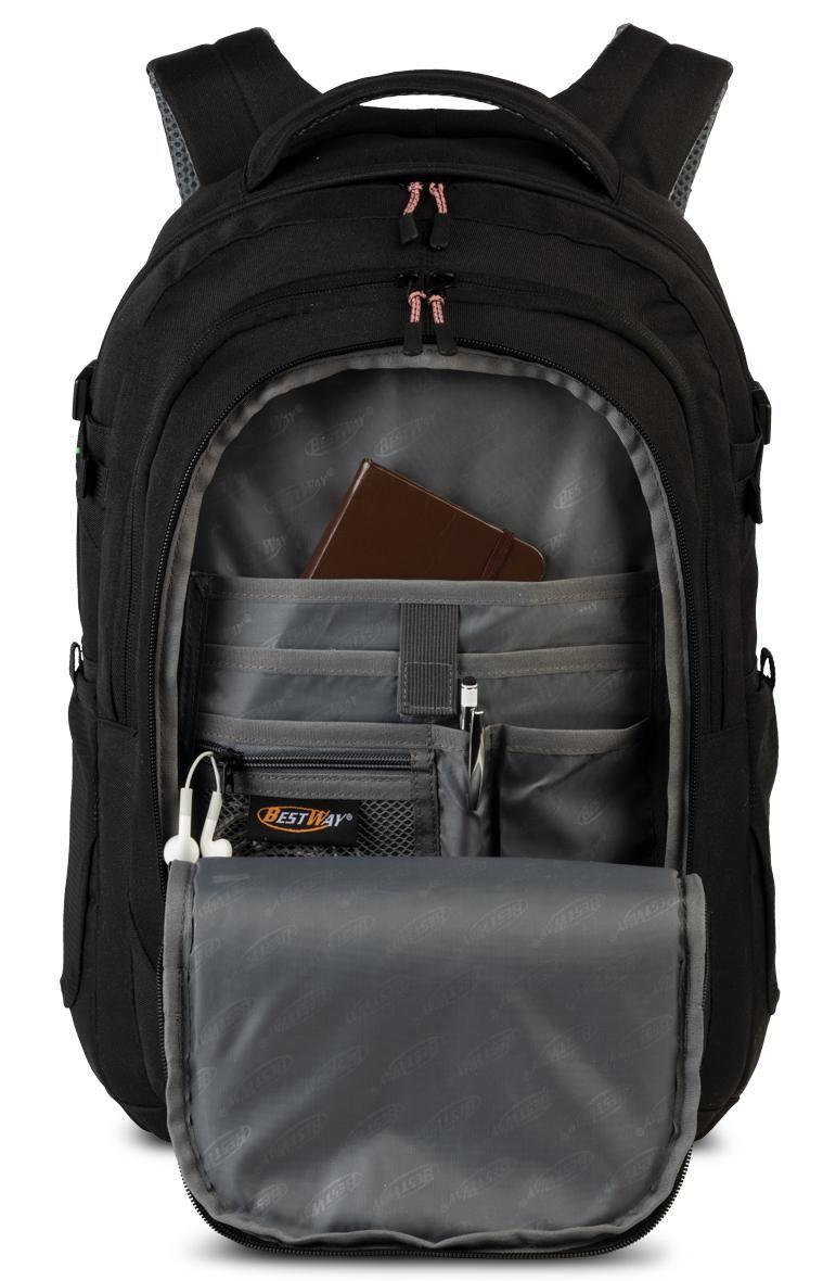 • BestWay Element Rucksack schwarz | Leichter Tagesrucksack mit Laptopfach
