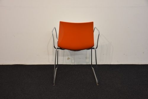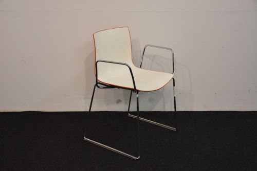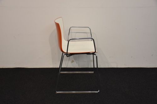 Besucherstuhl, weiß mit Rücken orange, Gestell chrom gebraucht