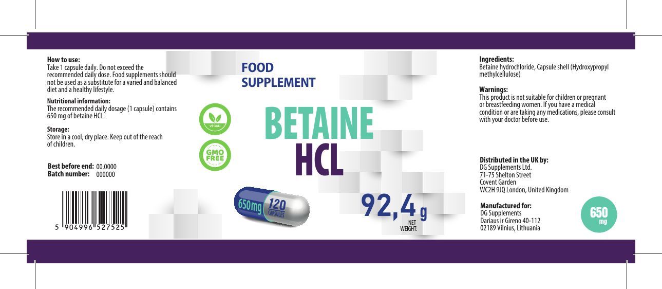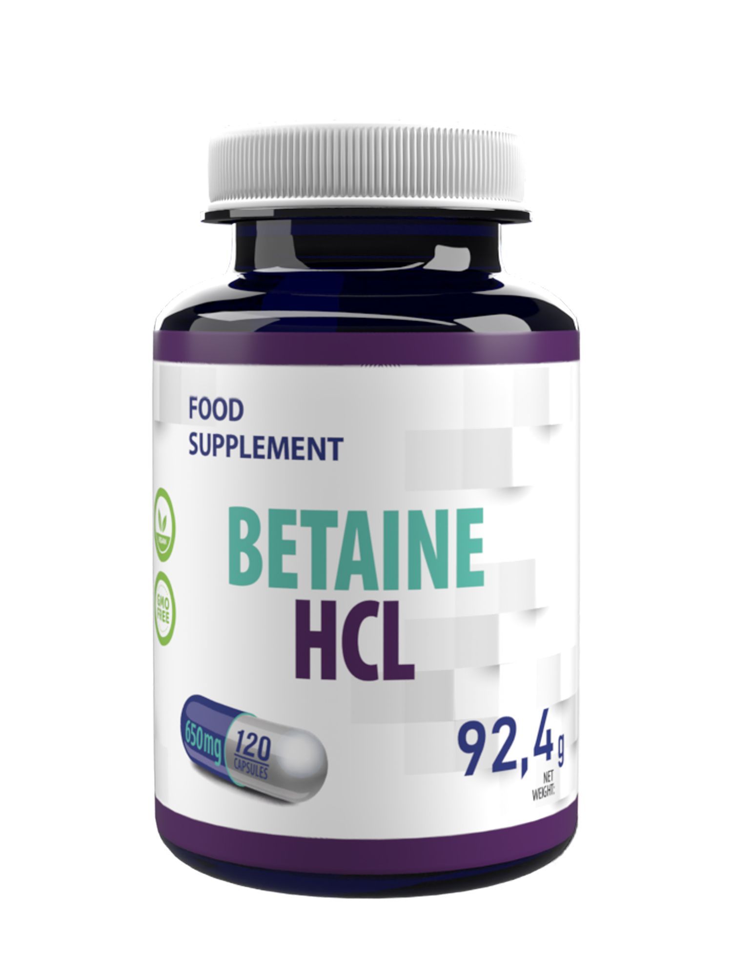 Betain HCL 650mg 120 Vegane Kapseln, Laborgeprüft, Hochdosiert