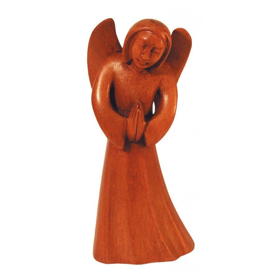 Saraswati Betender ENGEL aus Holz braun 9 x 18 cm Feng-Shui Heilige Figur Statue Skulptur