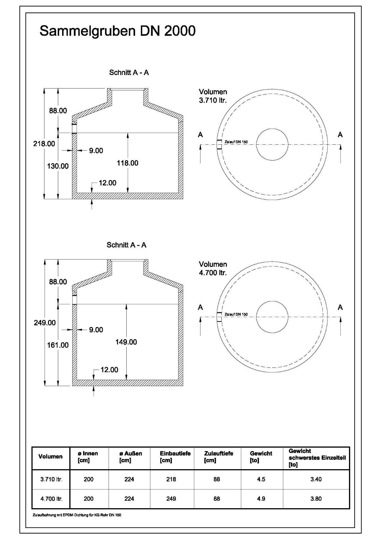 Beton Abwassersammelgrube 3710 Liter - 10450 Liter PLZ 20-33
