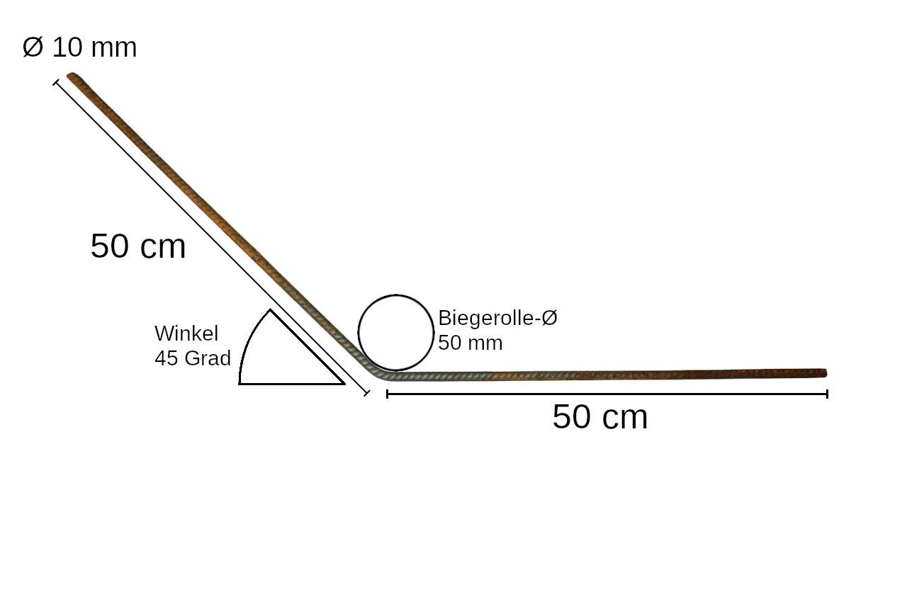 Betonstahl-Winkel Ø 10 mm, 45 Grad - 50 x 50 cm, 8 Stück, Baustahl