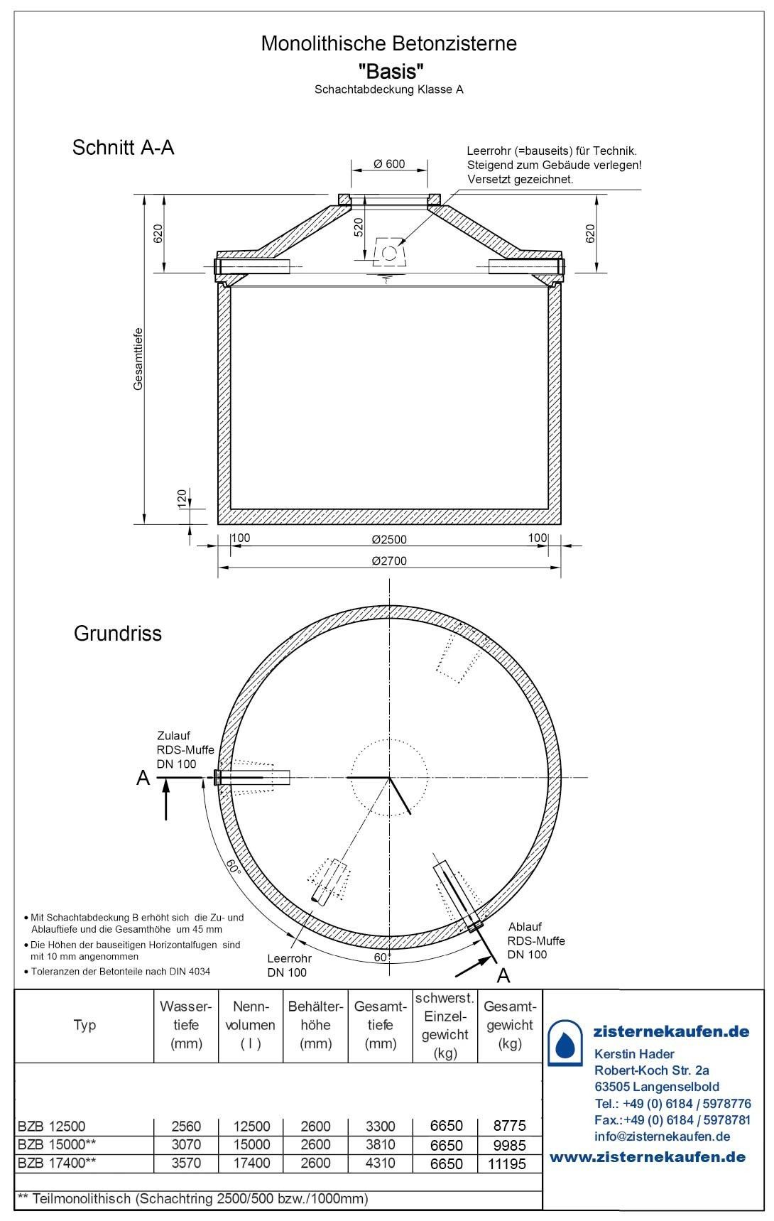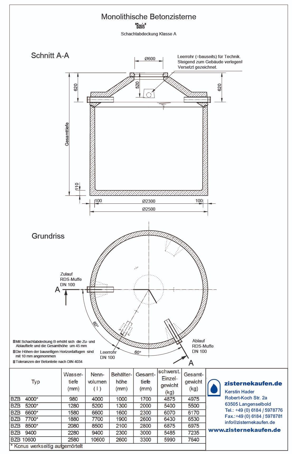 Betonzisterne Basis PLZ 34-36/54-56/60-79