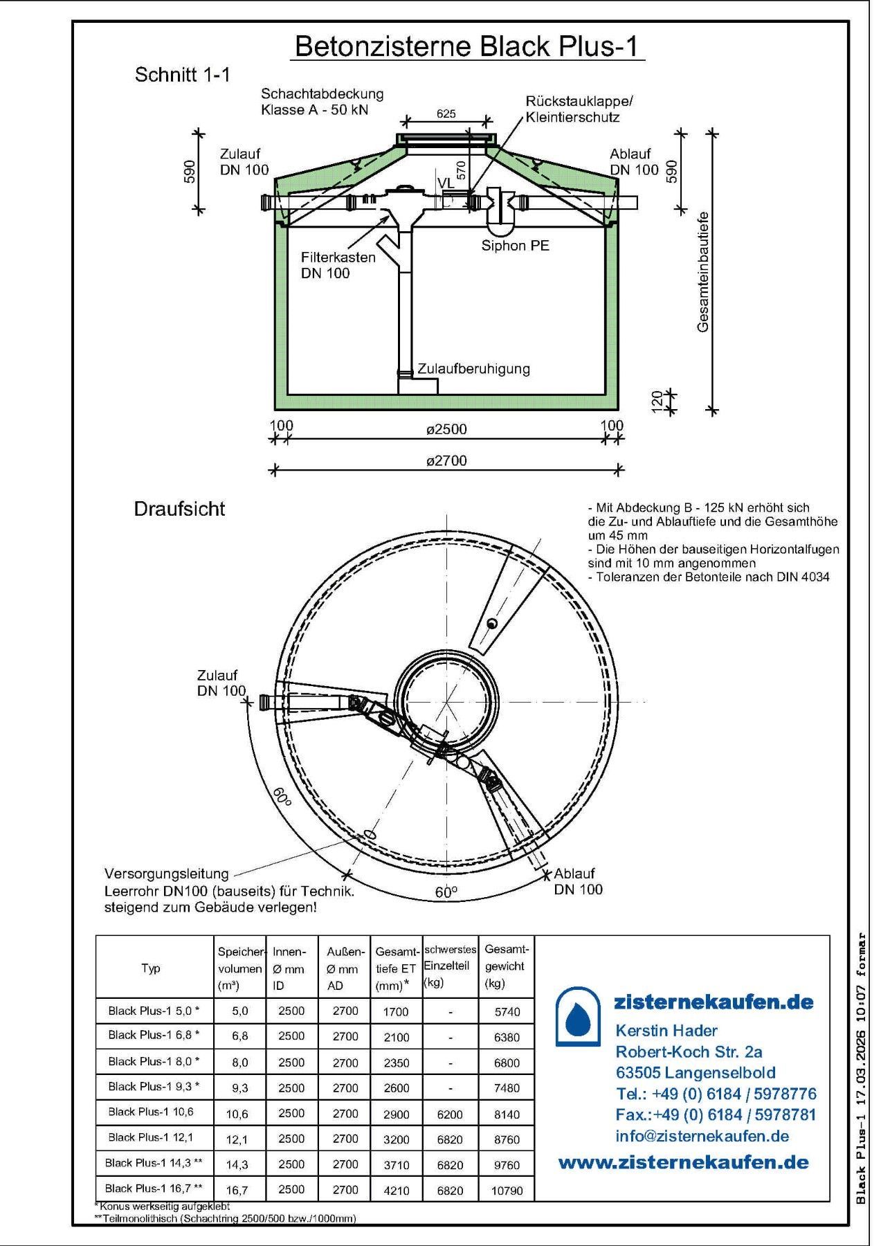 Betonzisterne Black Plus Dachfläche bis 320 m² Betonzisterne Black Plus Unsere Betonzisternen haben eine Wand- Bodenstärke von 9-12 12 cm und sind aus Beton der Kl C35 45 d.h. wasserundurchlässig gefertigt. Die Zisterne ist monolithisch aufgebaut und der Konus ist bereits mit dem Grundbehälter