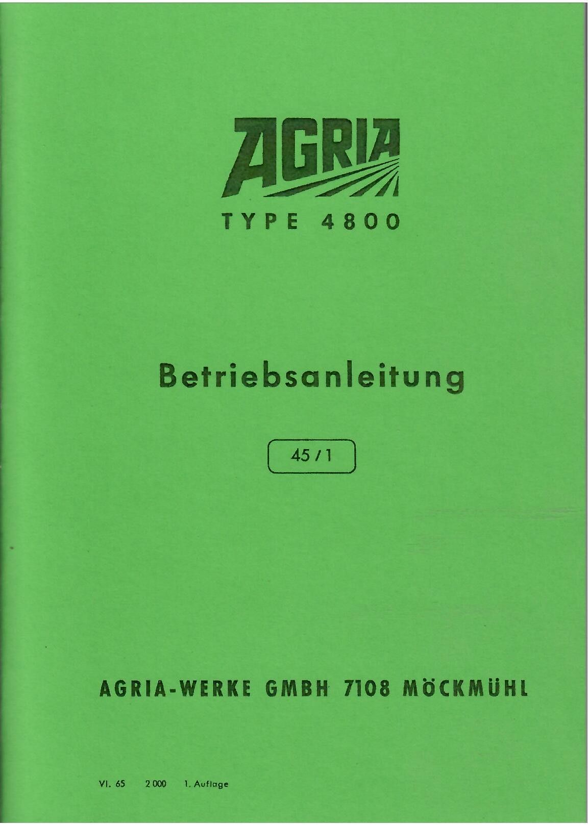 Betriebsanleitung Agria Type 4800, mit Hatz Dieselmotor Typ E 780 , 10 PS