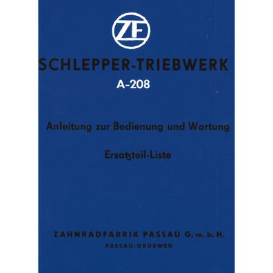 • ZF Friedrichshafen Schleppertriebwerk A208 Bedienungsanleitung Betriebsanleitung