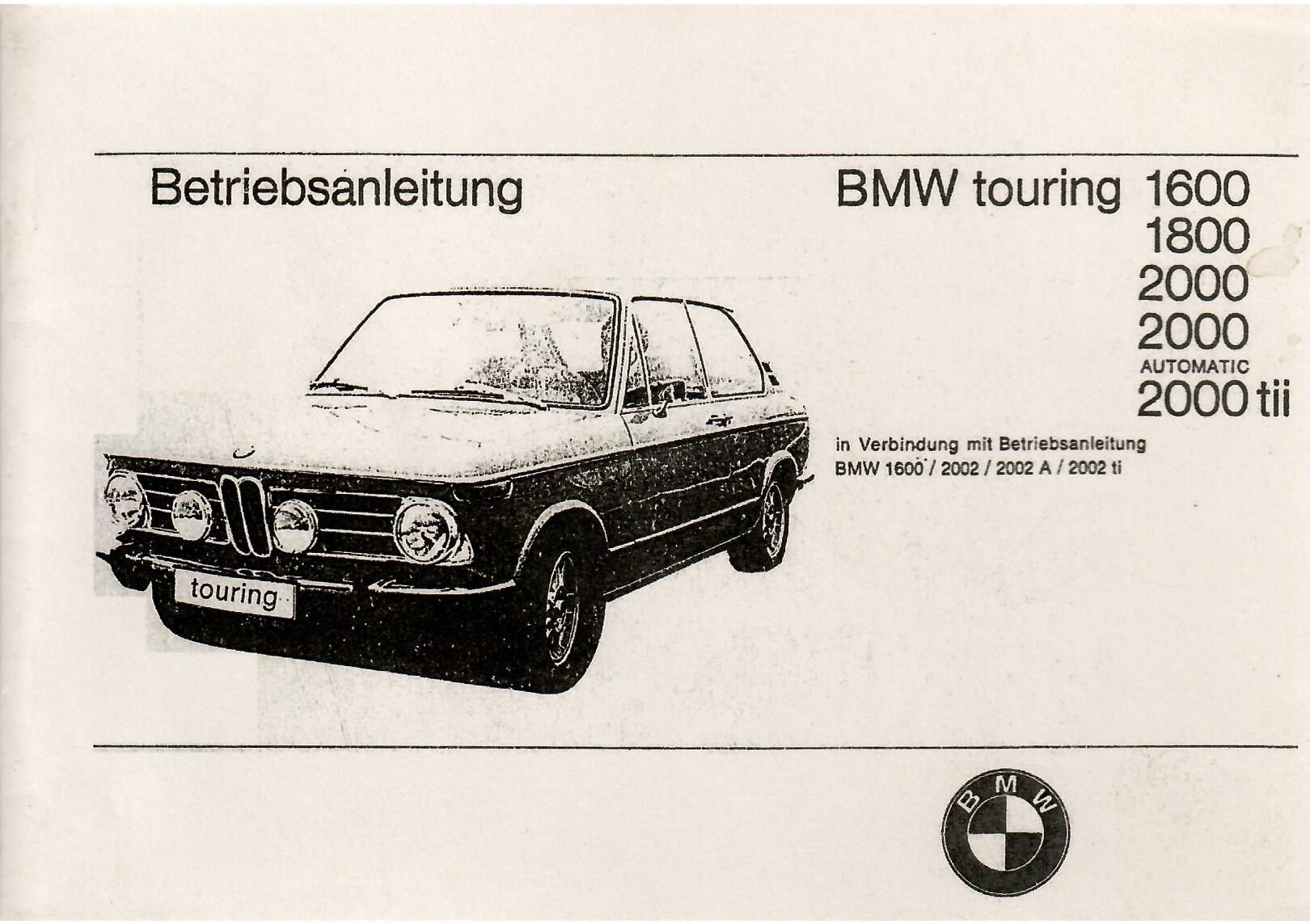 BMW Betriebsanleitung BMW Touring 1600 , 1800 , 2000 , 2000 tii auch Automatic