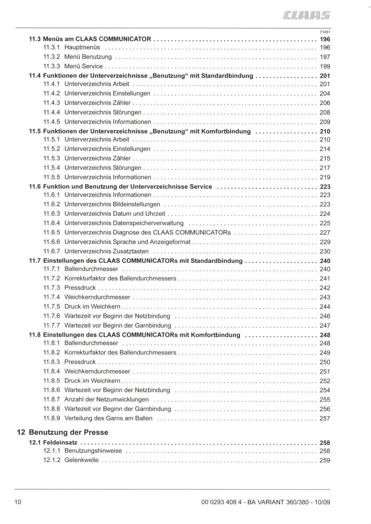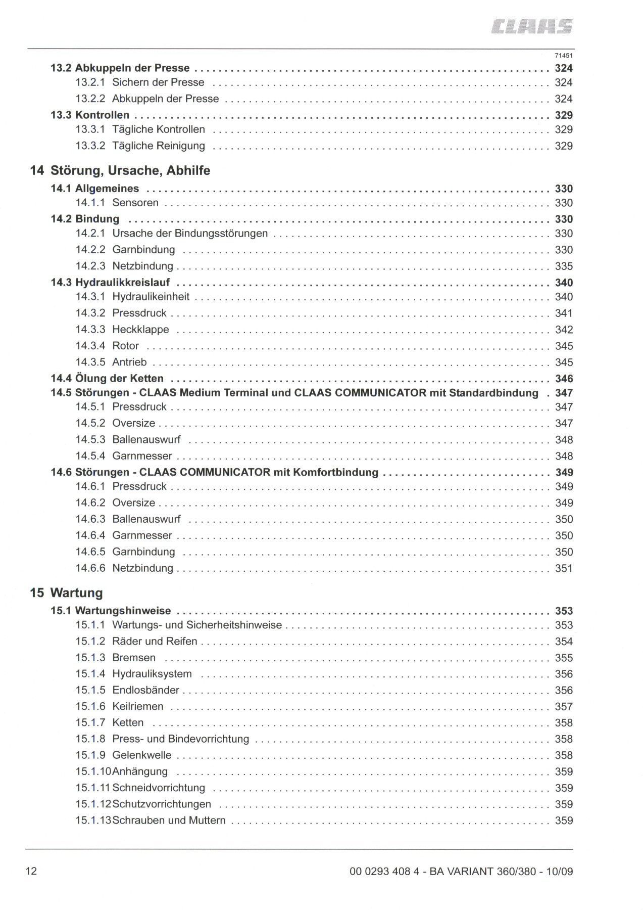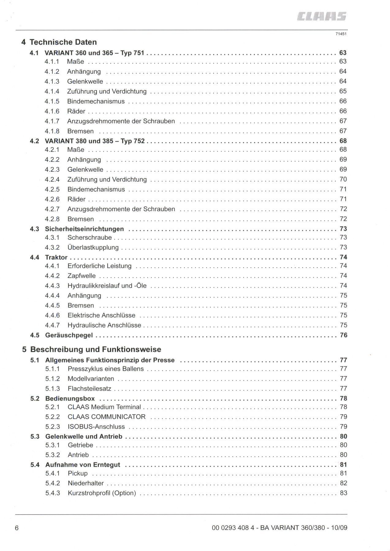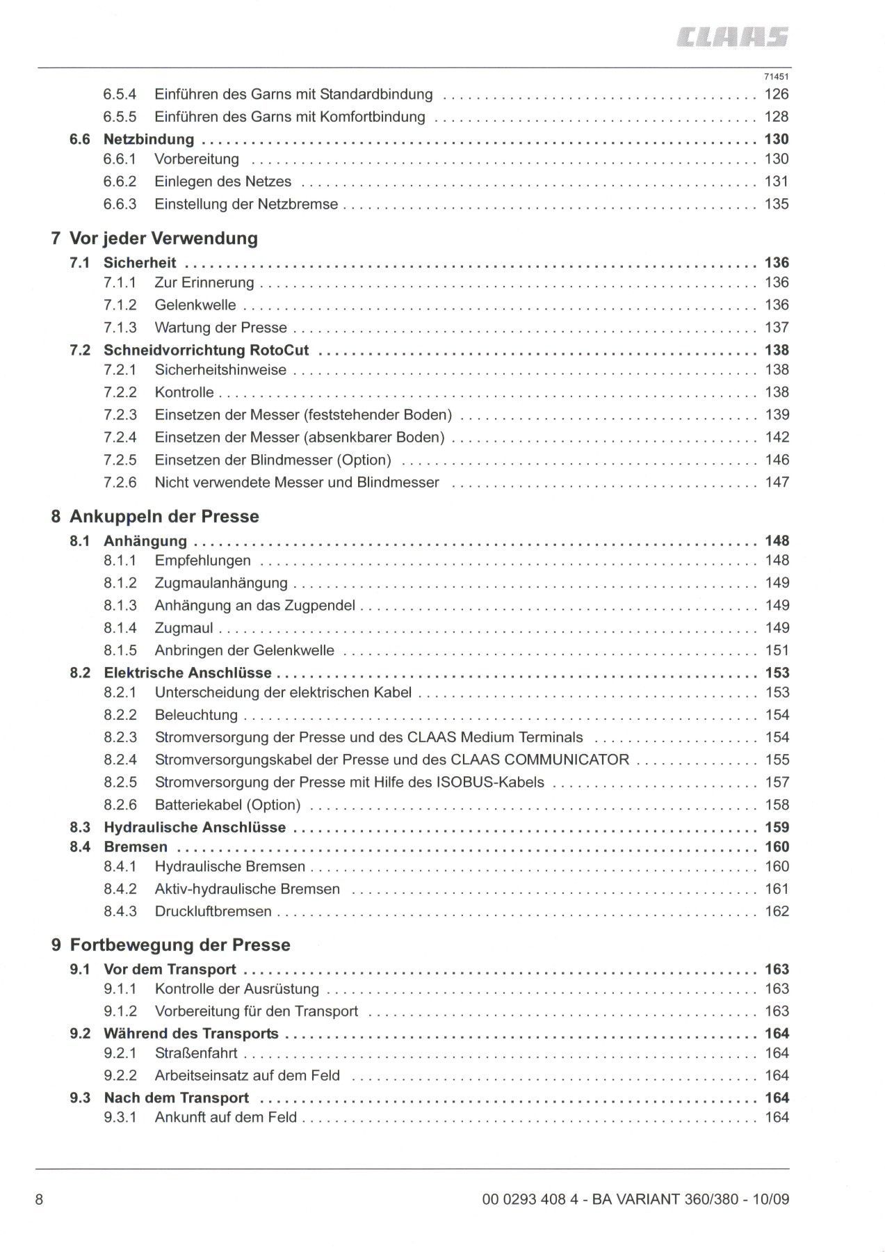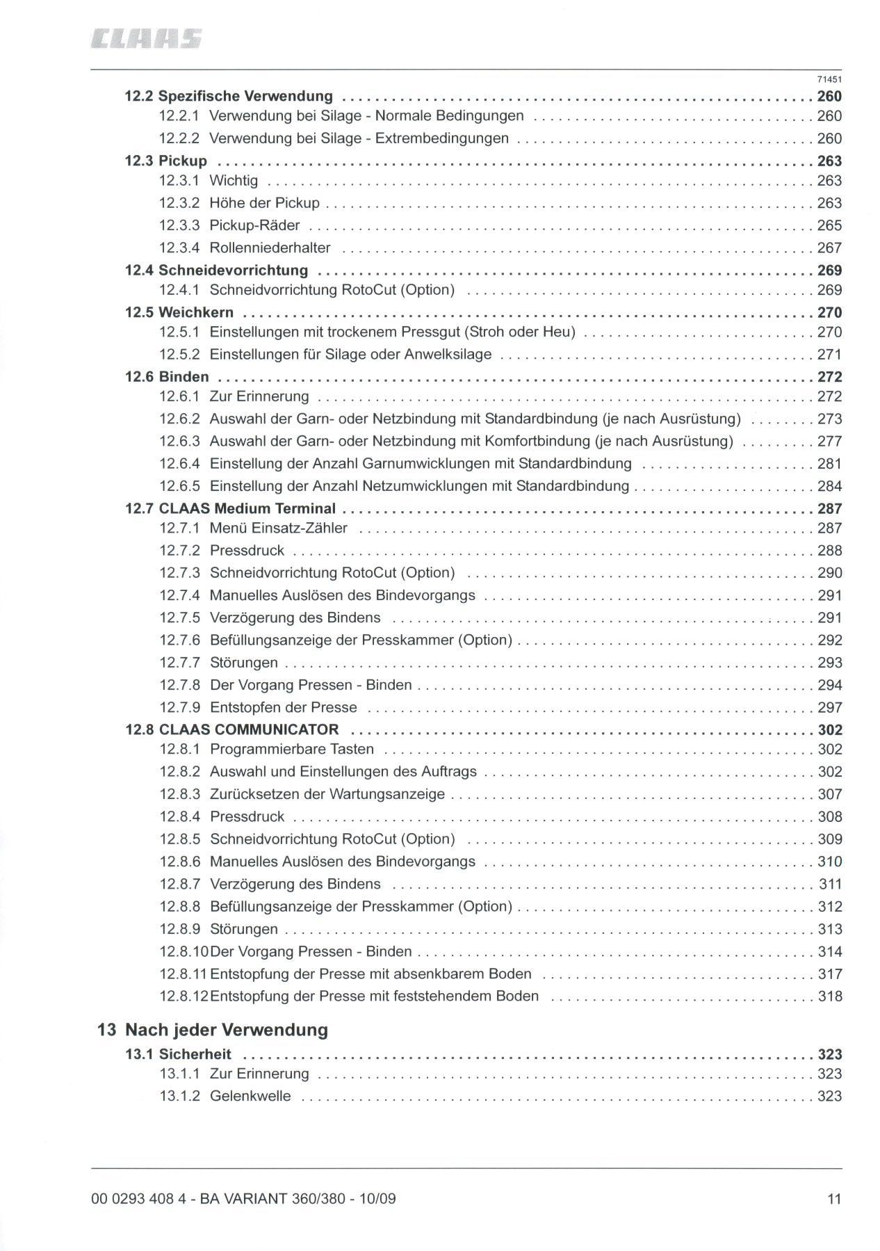 Betriebsanleitung Claas Variant 360-385 Roto Cut Rundballen Presse