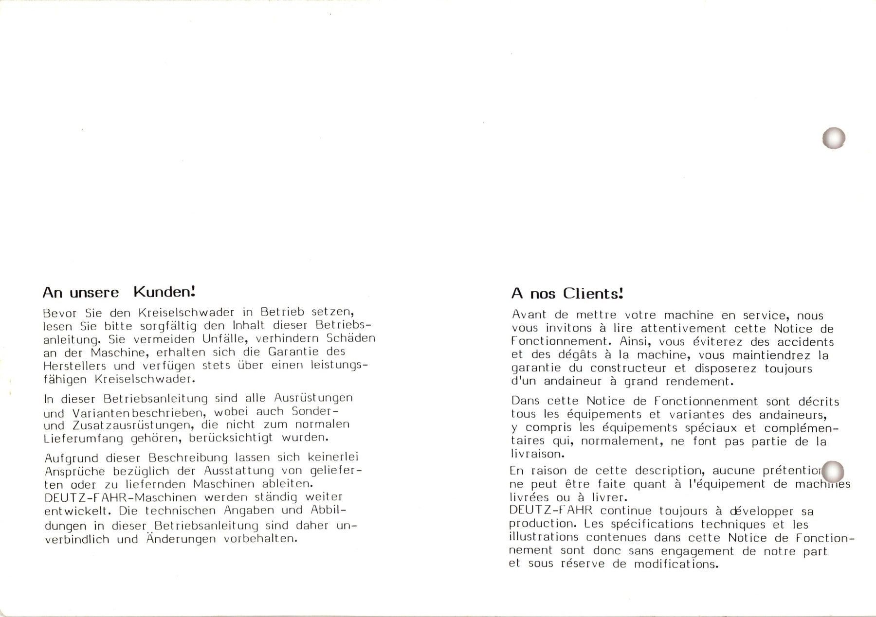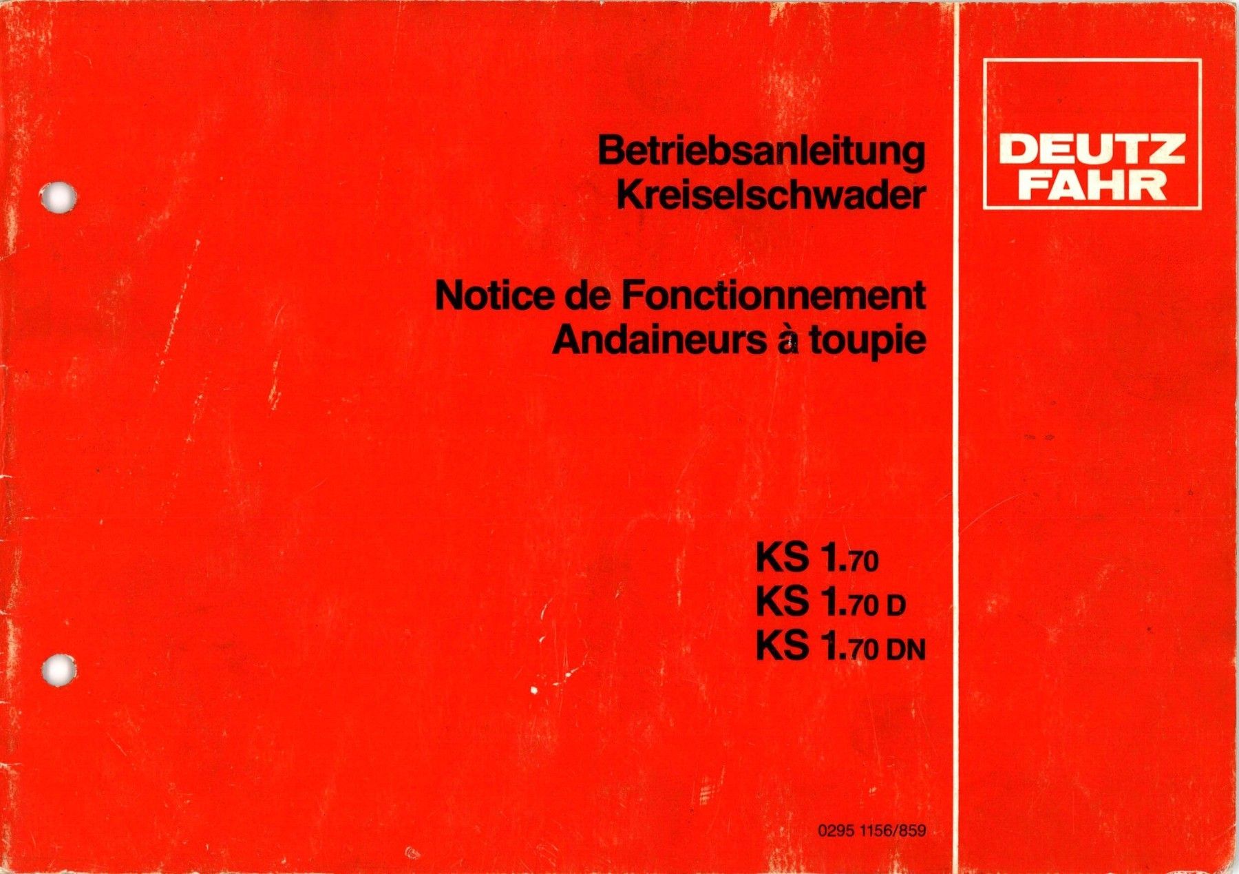 Betriebsanleitung Deutz Fahr Kreiselschwader KS1.70 KS 1.70 D KS 1.70 DN
