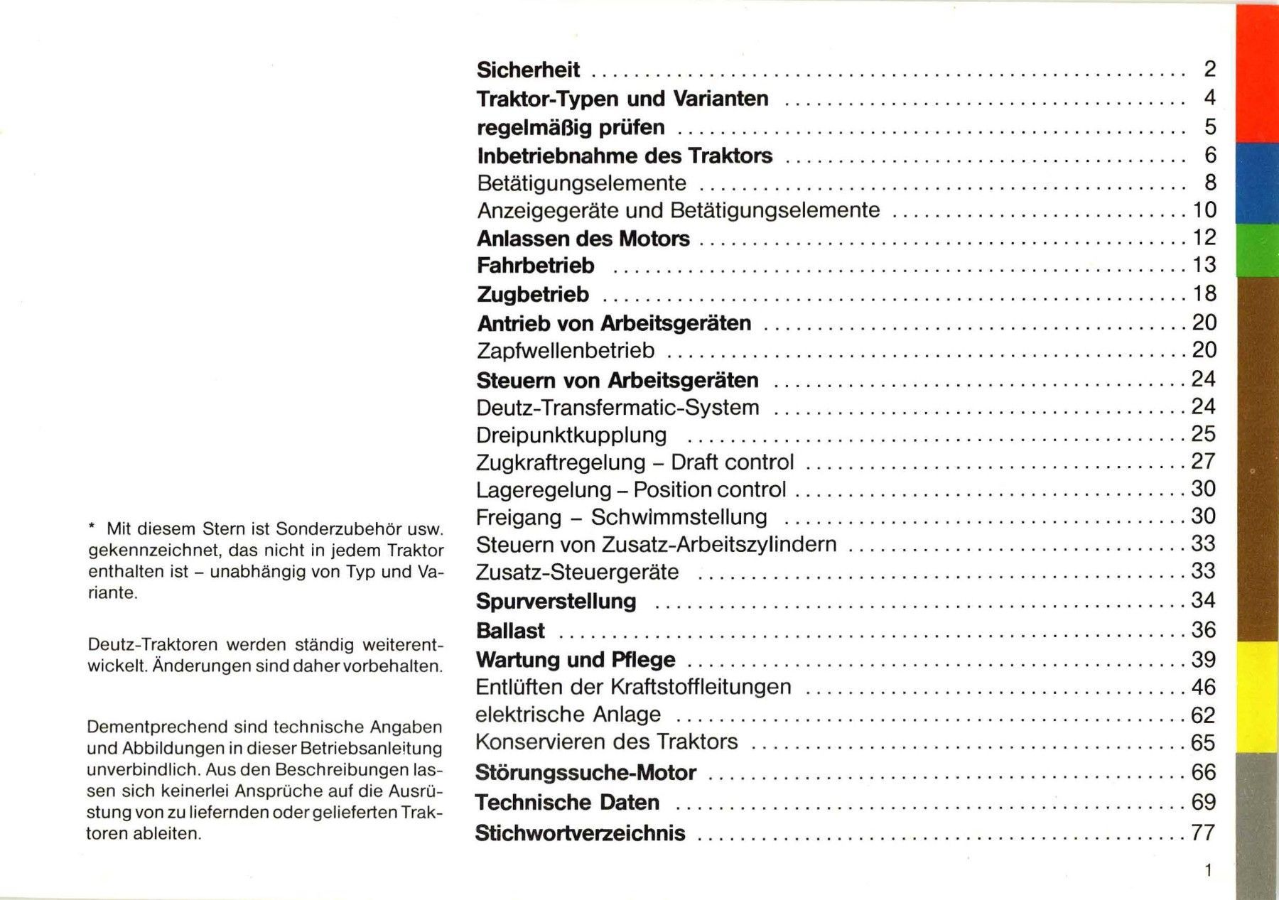 Betriebsanleitung Deutz Fahr Traktoren D 6807, D 7207 und D 7807