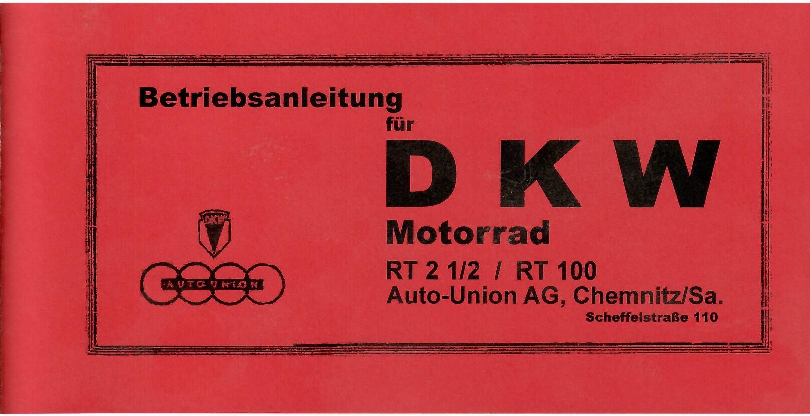 Betriebsanleitung DKW Motorrad RT 2,5 / RT 100, Oldtimer