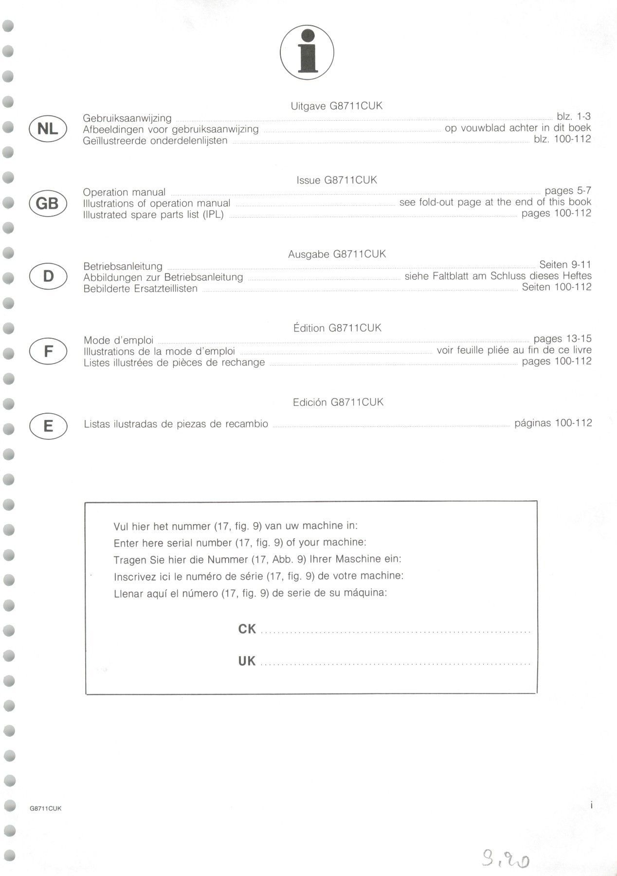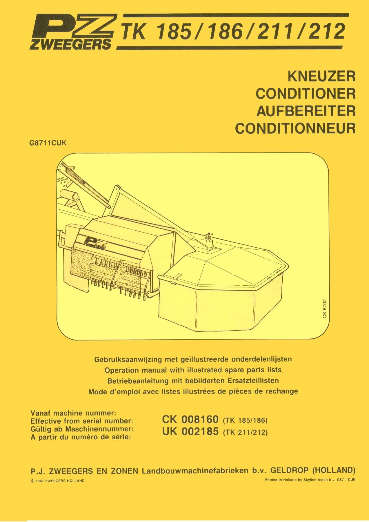 Fiat Betriebsanleitung Betriebsanleitung Ersatzteilliste für den PZ Zweegers Aufbereiter TK 185-186-211-212