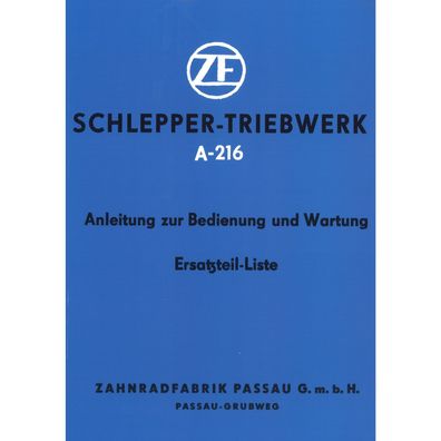 • ZF Passau Schlepper Triebwerk A-216 Betriebsanleitung Ersatzteilliste
