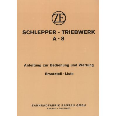 • ZF Passau Schlepper Triebwerk A-8 Betriebsanleitung Ersatzteilliste