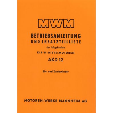 • MWM Dieselmotor AKD12 Traktor Betriebsanleitung und Ersatzteilliste