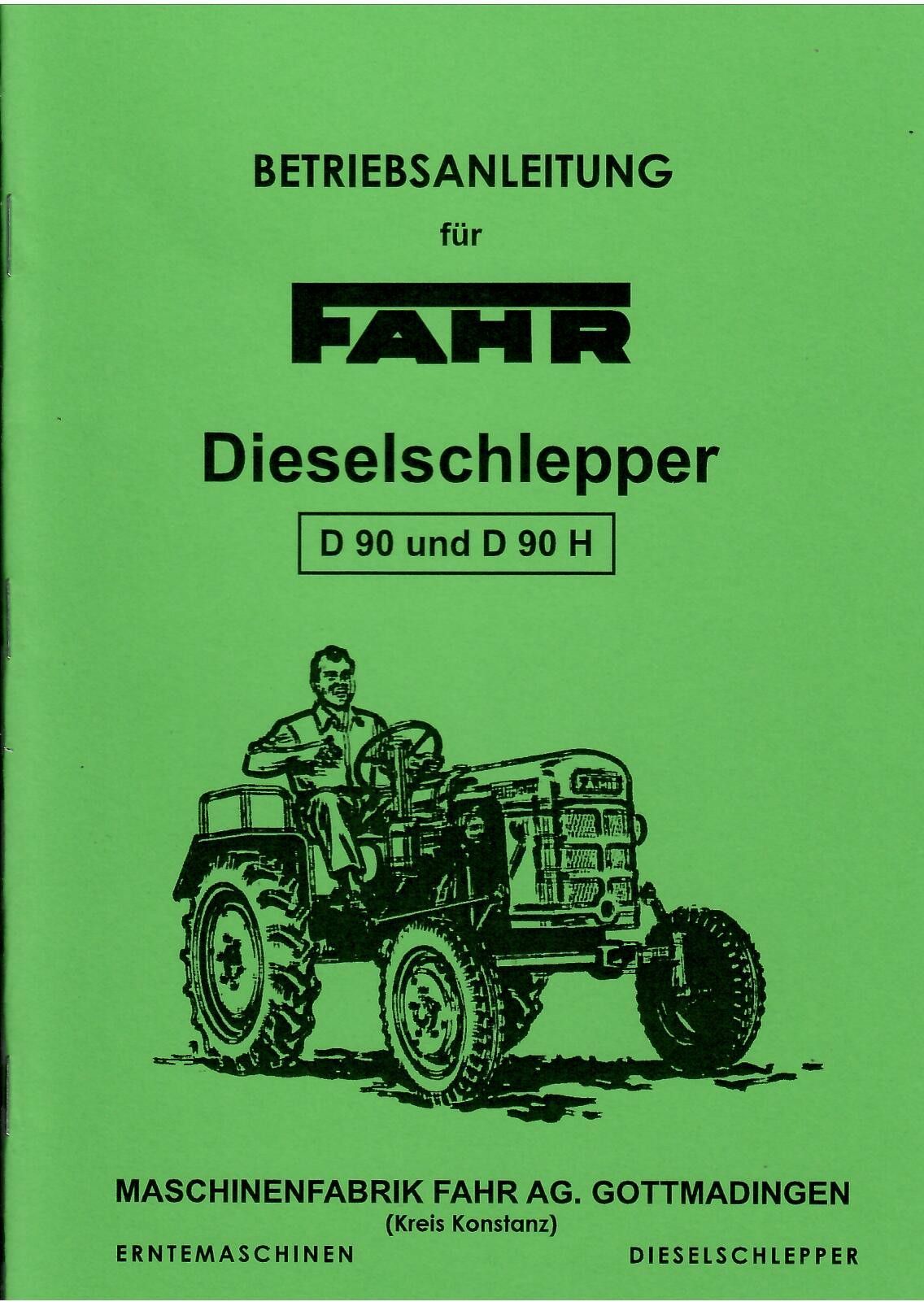 Betriebsanleitung FAHR Dieselschlepper D 90 und D 90 H, Landtechnik, Trecker