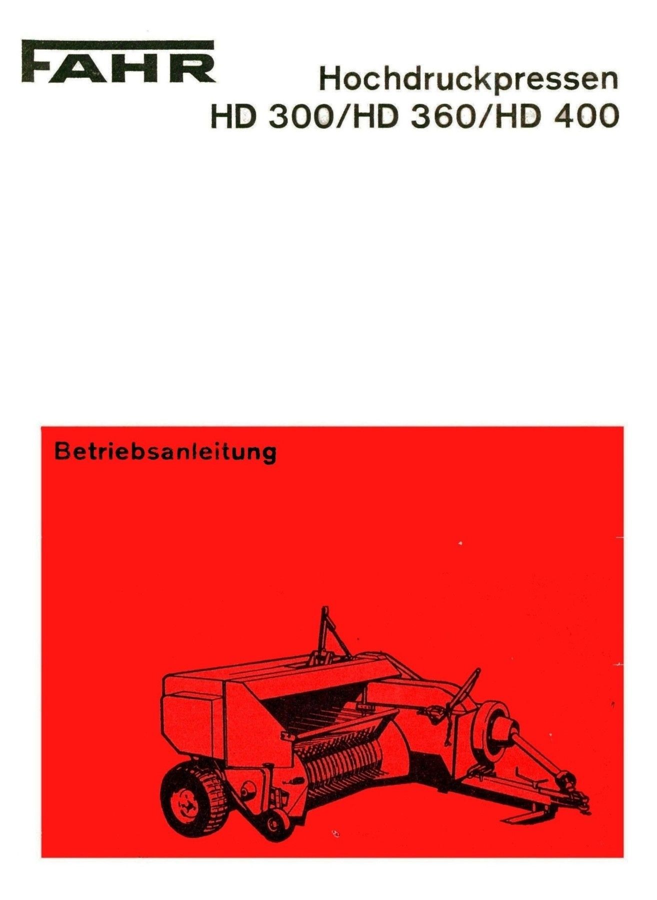 Betriebsanleitung Fahr Hochdruckpressen HD300, HD360 und HD400