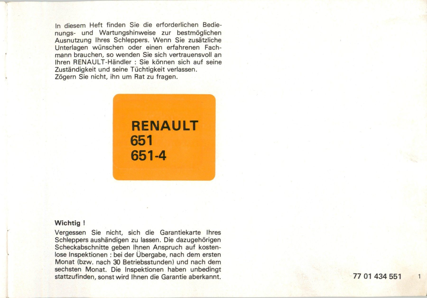 Renault Betriebsanleitung für den Renault R 651 R 651 - 4 (7461-7464)