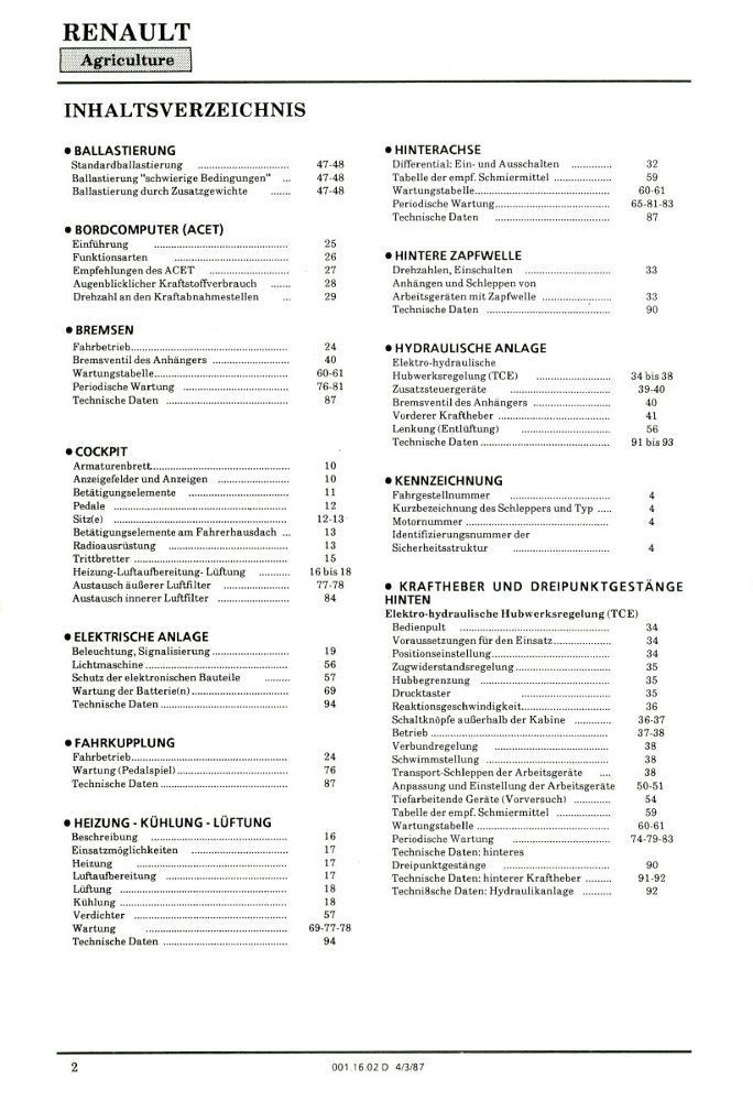 Renault Betriebsanleitung für die Renault Traktoren 145.14 TZ16 133.14 TZ16 120.14 TZ