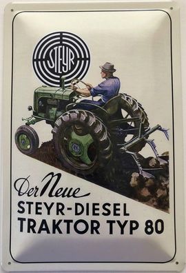 • Blechschild 30 X 20 cm Steyr-Diesel Traktor Typ 80