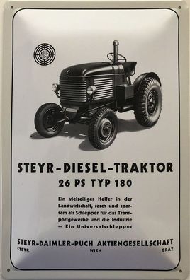 • Blechschild 30 X 20 cm Steyr Diesel Traktor 26 PS Typ180