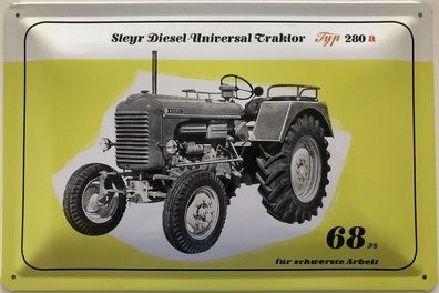 • Blechschild 30 X 20 cm Steyr-Diesel Traktor Typ 280a mit 68 PS