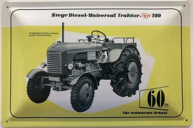 • Blechschild 30 X 20 cm Steyr-Diesel Traktor Typ 280 mit 60 PS