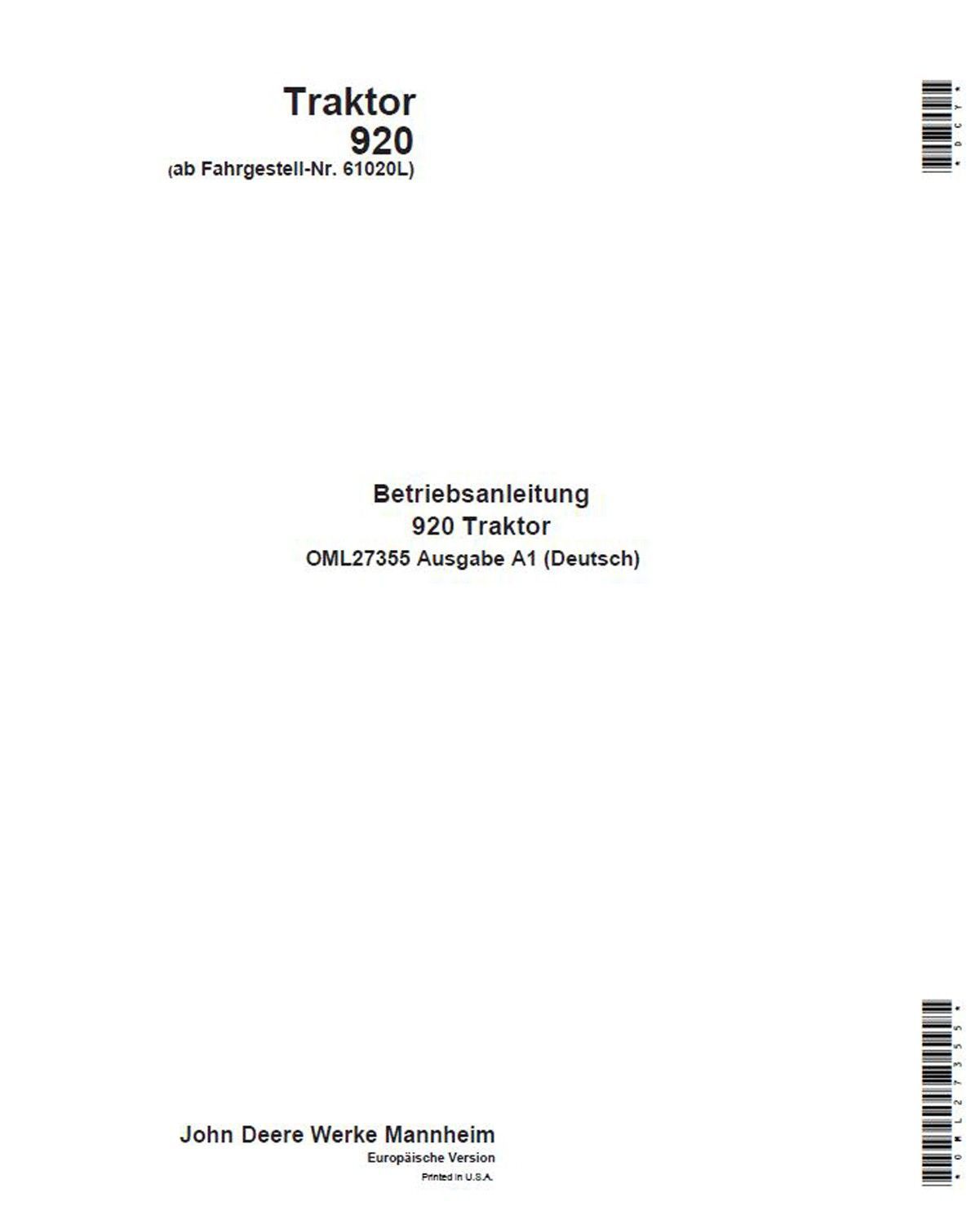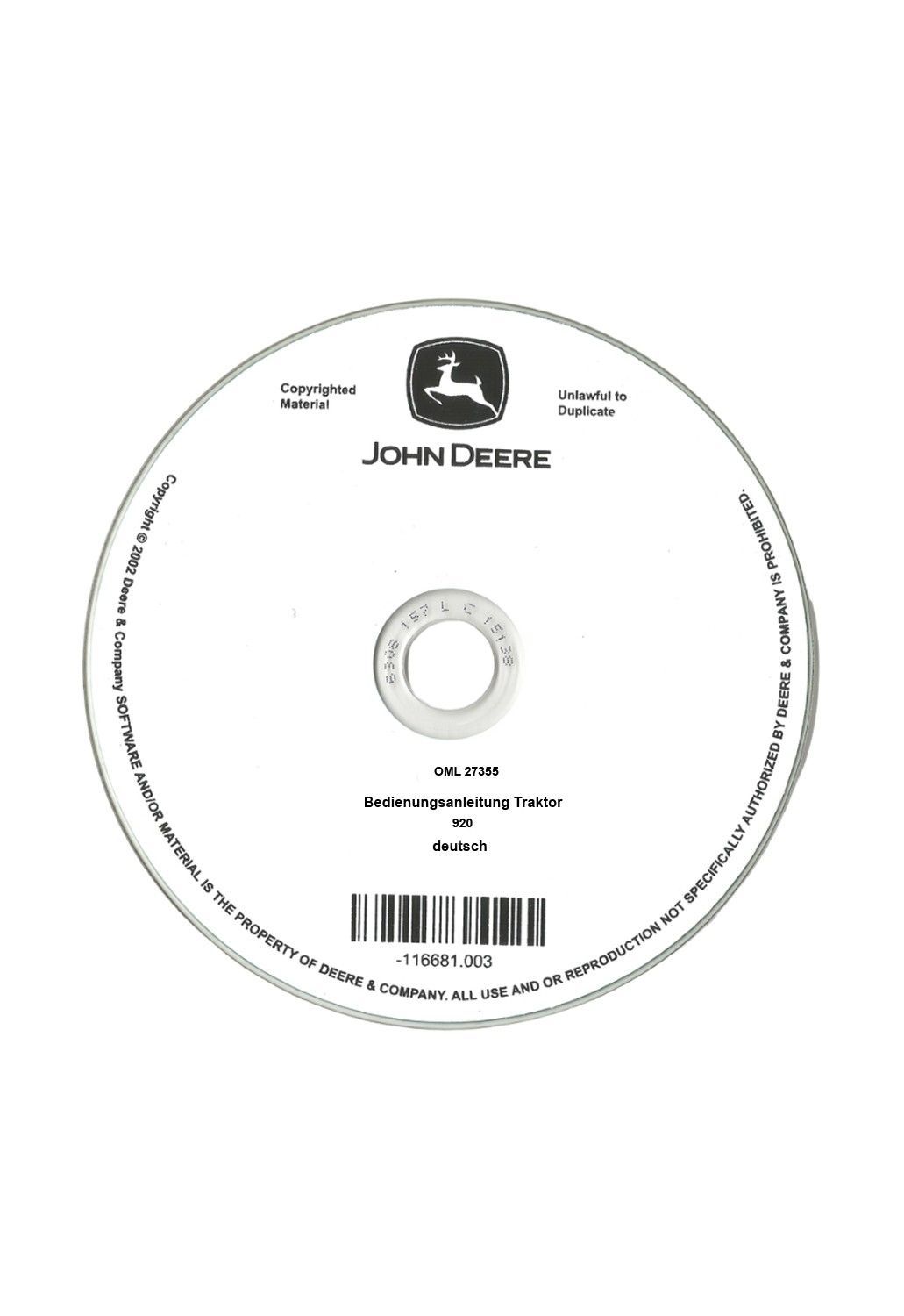 John Deere Betriebsanleitung für John Deere Traktor 920 Schlepper CD-Rom