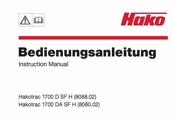 Betriebsanleitung HAKO-Rasentrac1700 D SFH (8088.02) und 1700 DA SF H (8080.02