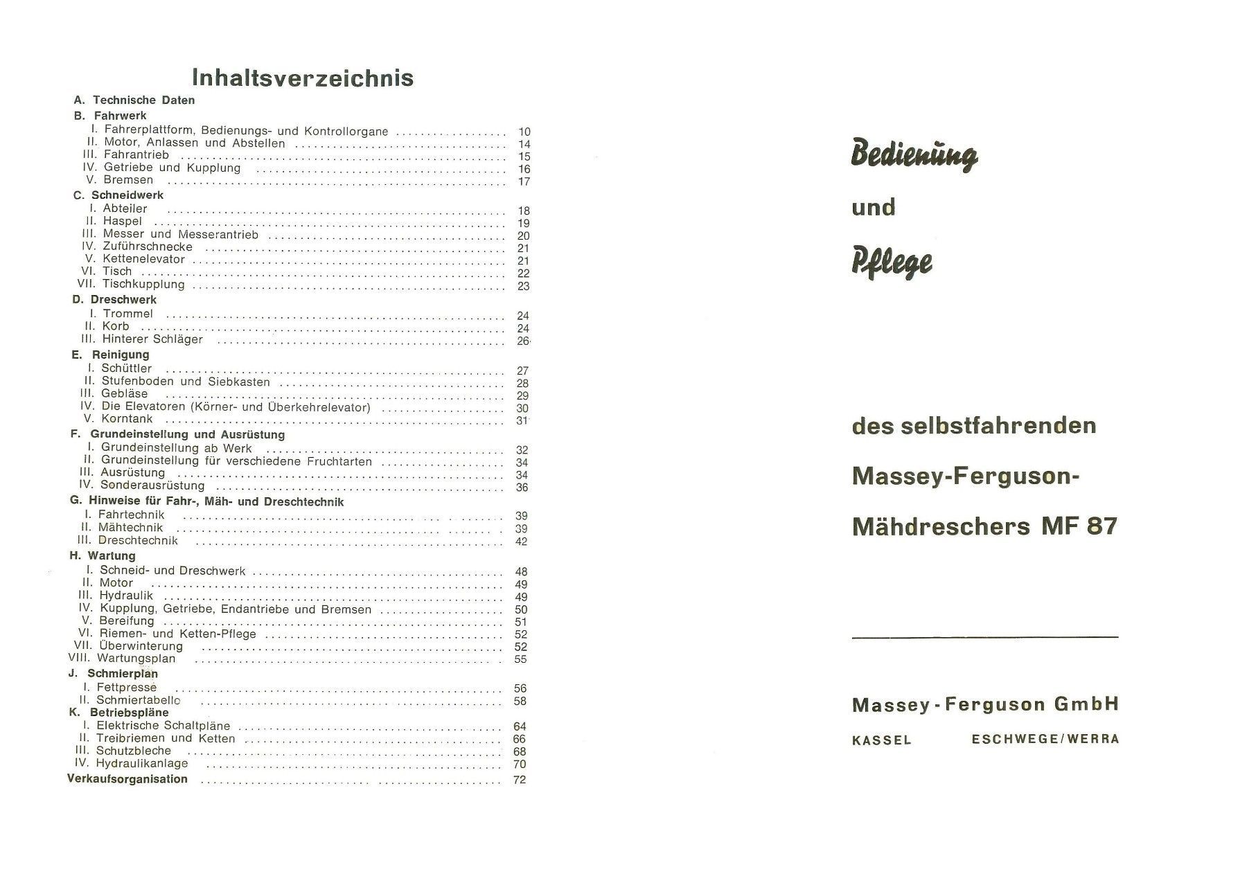 Betriebsanleitung Massey Ferguson Mähdrescher MF 87