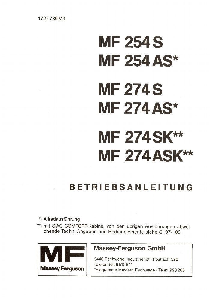 Betriebsanleitung Massey Ferguson MF 254 & 274 Allrad