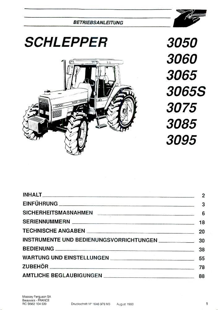 Betriebsanleitung Massey Ferguson MF3050 MF 3060 MF3065 MF3065 S MF3075 MF3085 MF3095