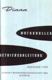 Betriebsanleitung Motorroller Dürkop Diana Roller Standard 9,5 PS 12 Volt Bosch Sport 12 PS 12 Volt Bosch mit 200 ccm E Starter und Kickstarter Ausgabe 1959 ca 75 Seiten A 6 Nachdruc
