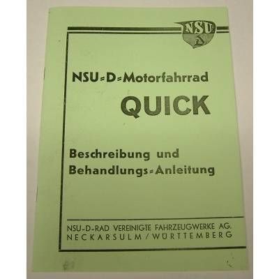 Betriebsanleitung NSU Quick 1937. Nachdruck in guter Qualität. Sorgfältig gebunden geheftet. Dies ist ein Angebot von: NSU- Schönhaar Internet: Wir haben ständig über 200.000 neue und gebrauchte NSU-Teile und Literatur am Lager. Besuchen Sie uns auf unserer Internetseite. Offer by: NSU - Schönhaar I