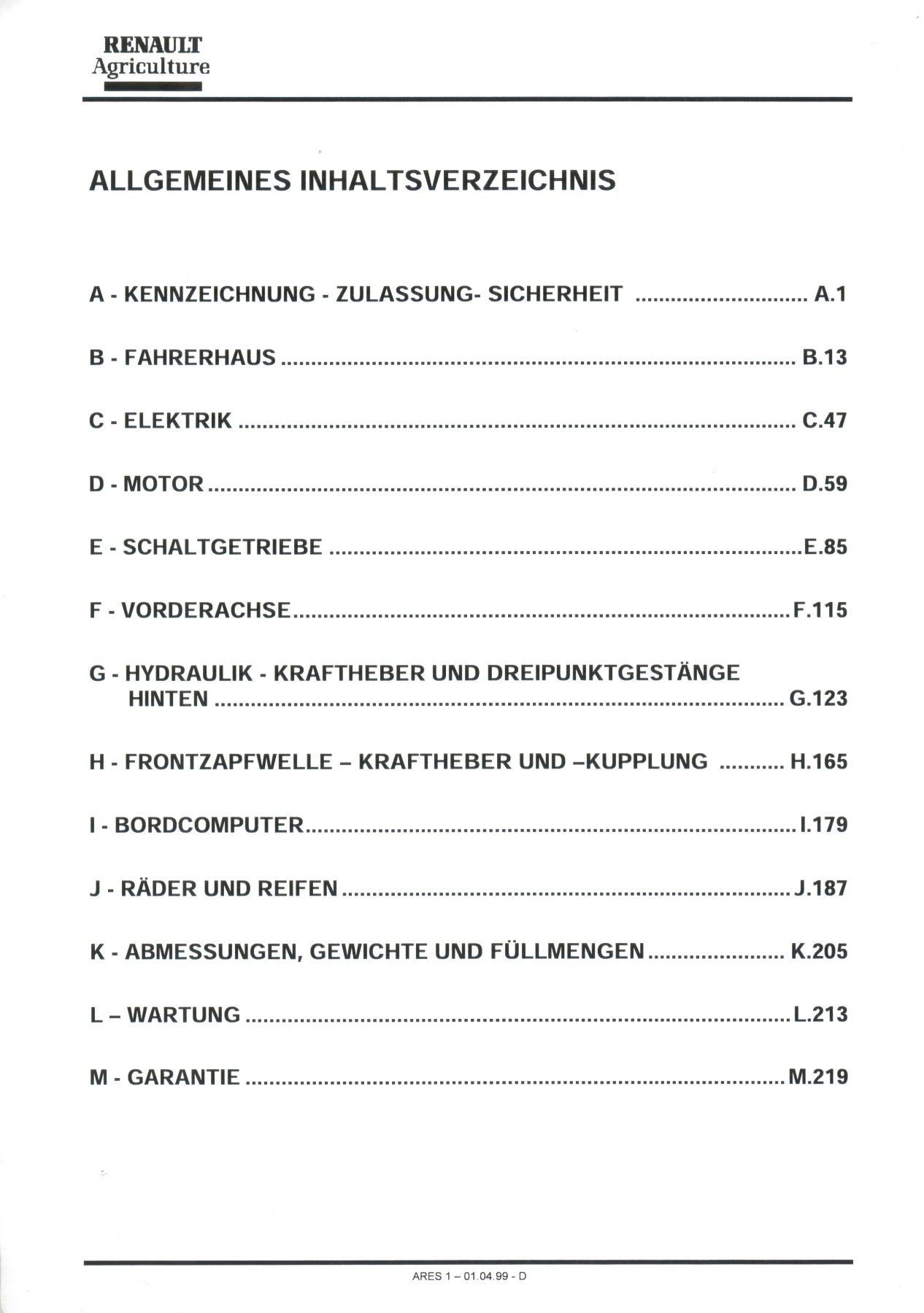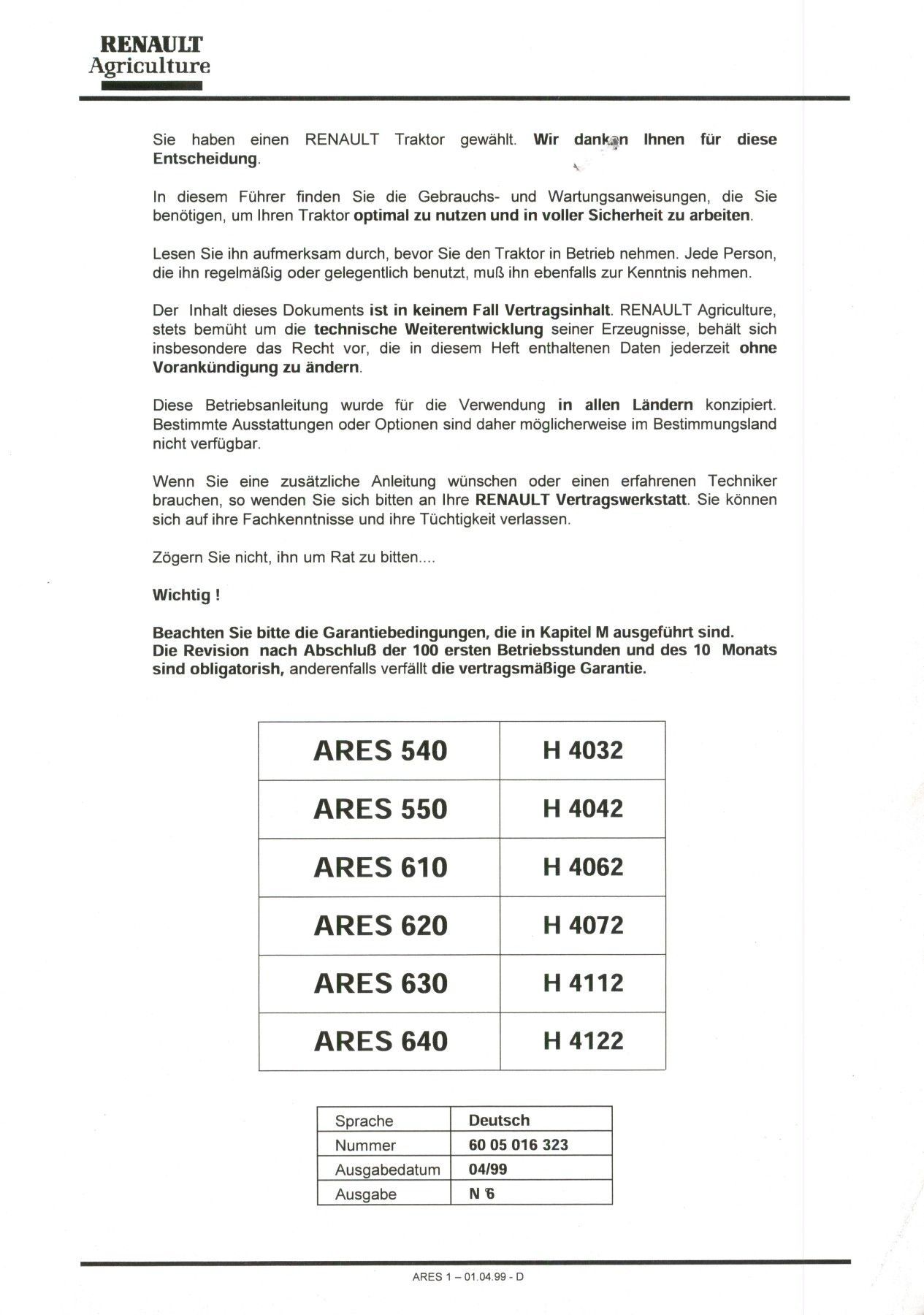 Renault Betriebsanleitung Renault ARES 540, 550, 610, 620, 630, 640