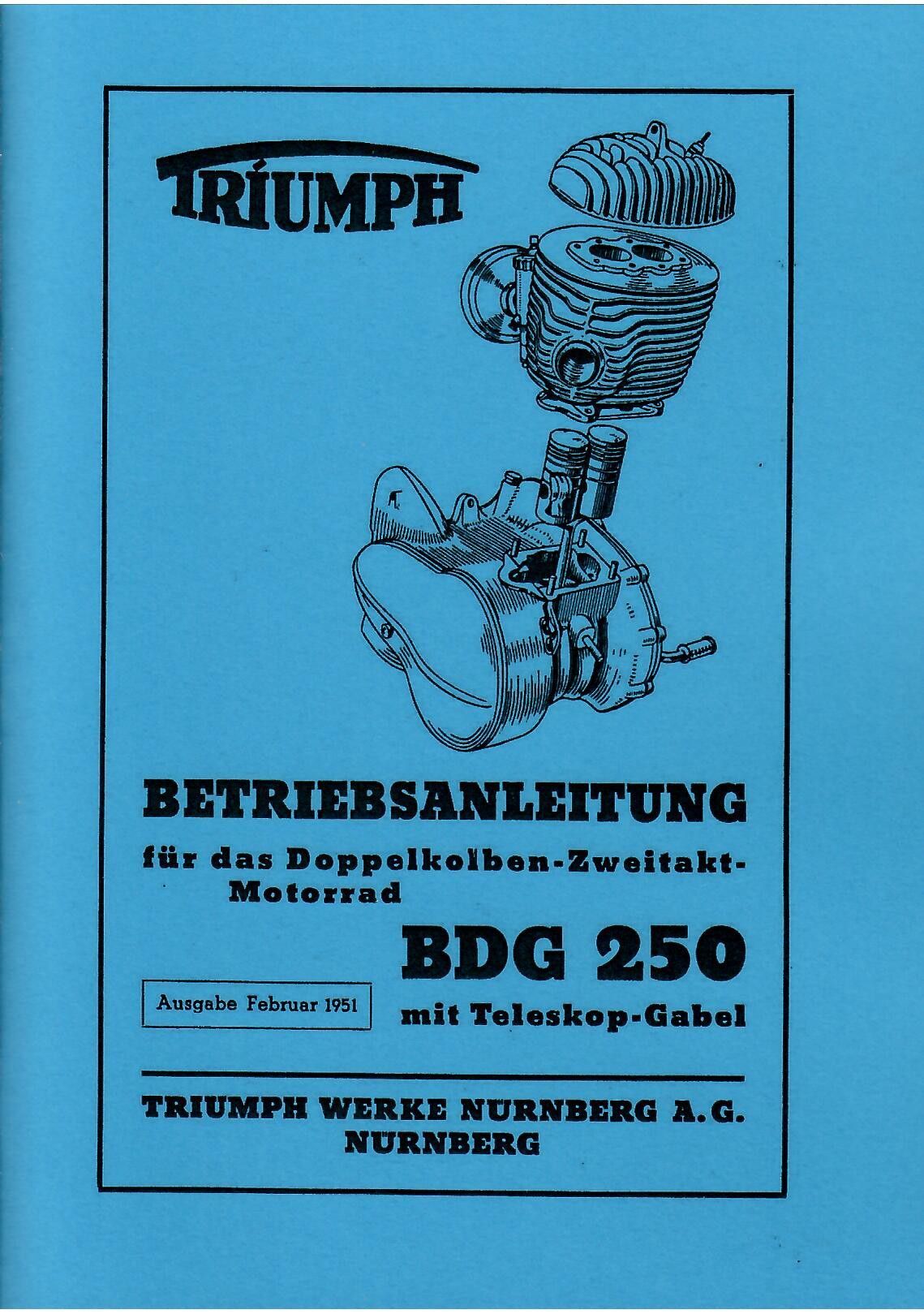 Triumph Betriebsanleitung Triumph BDG 250, Doppelkolben 2 Tackt Motorrad, Oldtimer