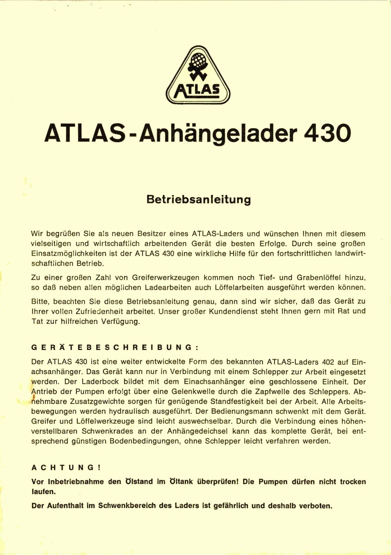 Betriebsanleitung und Ersatzteilliste Atlas Anhängelader 430