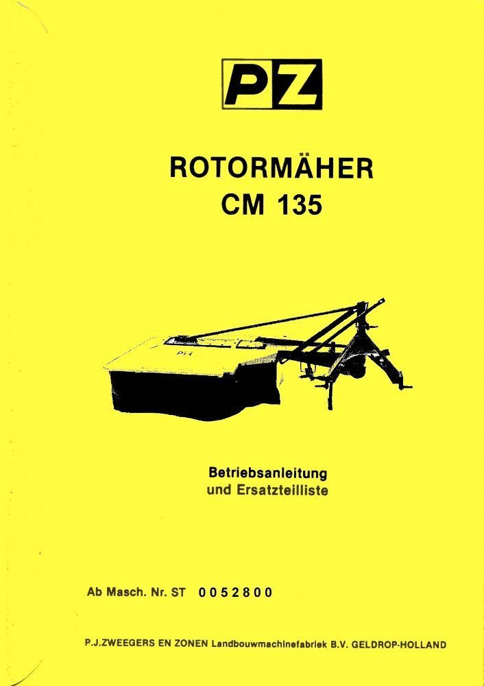 Betriebsanleitung und Ersatzteilliste für das PZ Zweegers Mähwerk Rotormäher CM135 ST