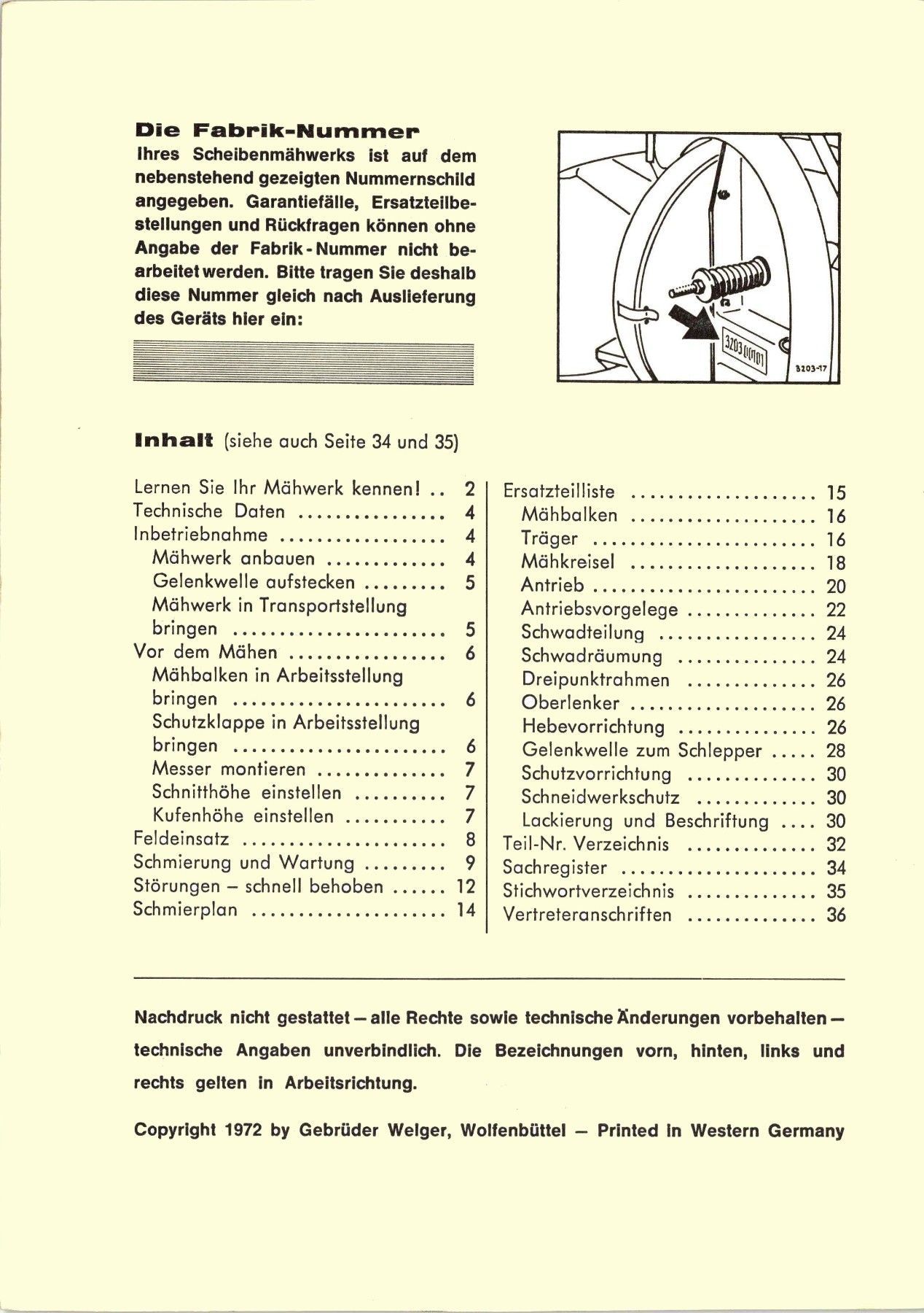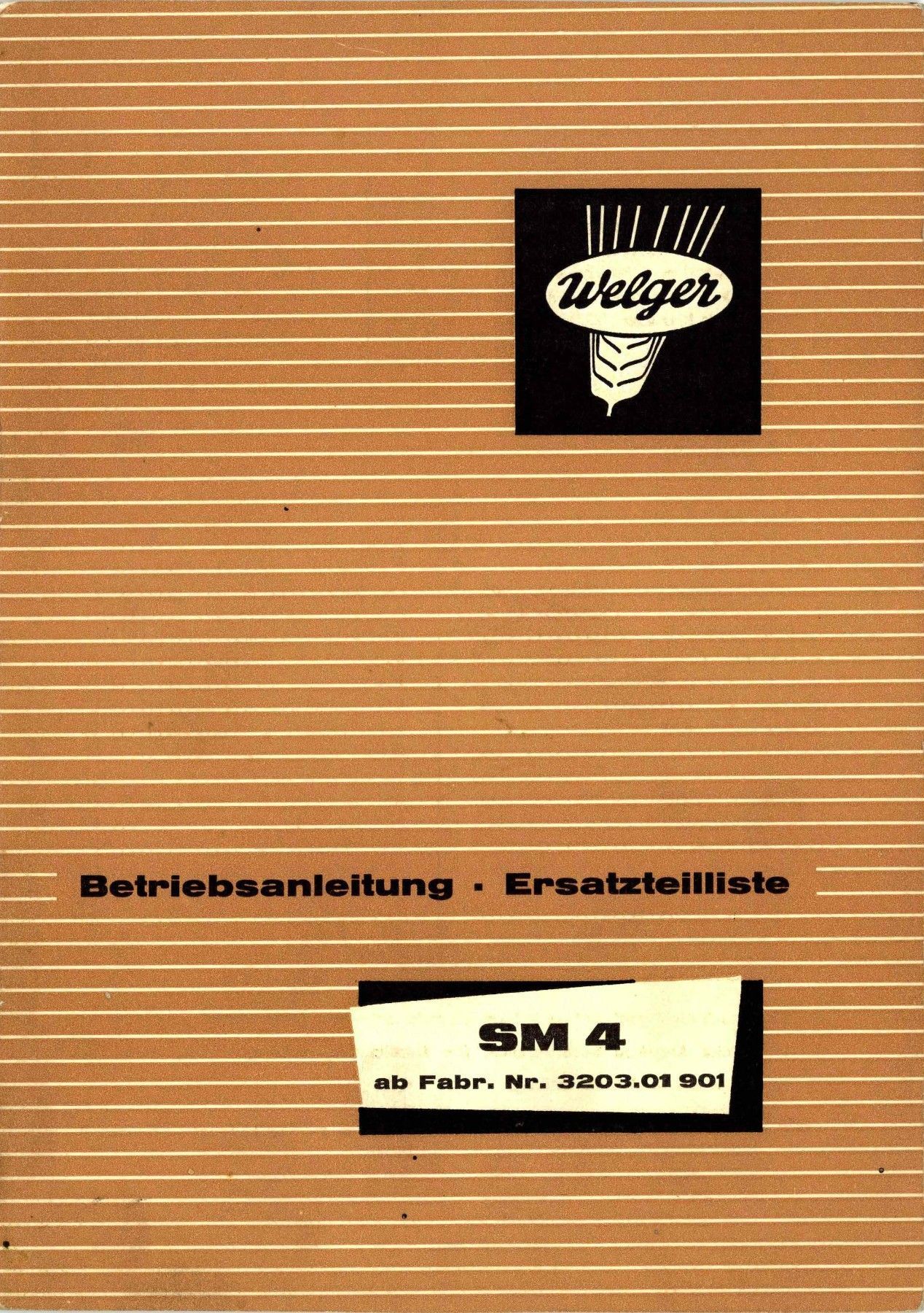 Betriebsanleitung und Ersatzteilliste Welger SM 4 Scheibenmähwerk Fab. Nr 3203.01901