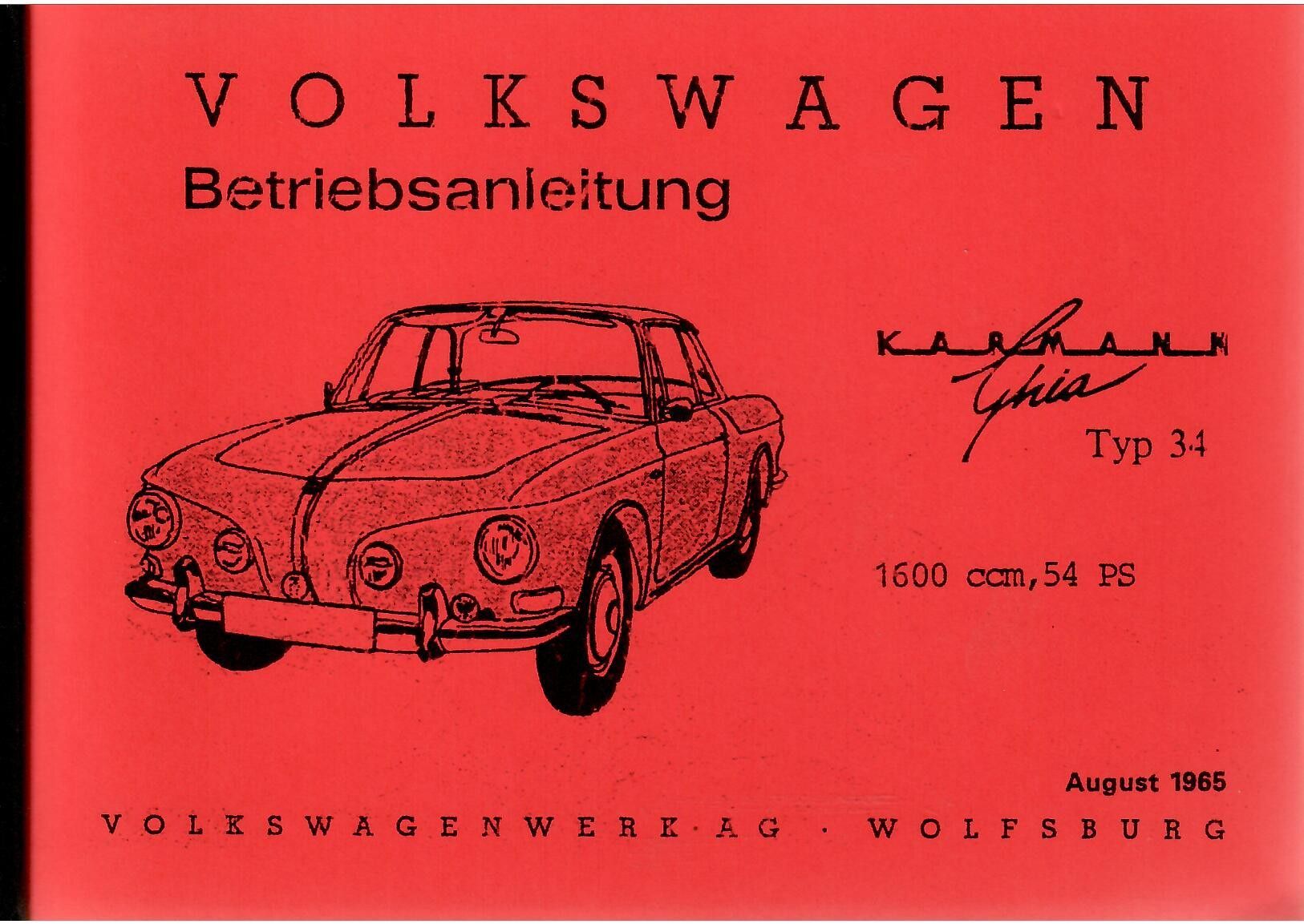 Volkswagen Betriebsanleitung VW Karmann Ghia Typ 34 1600 ccm, 54 PS
