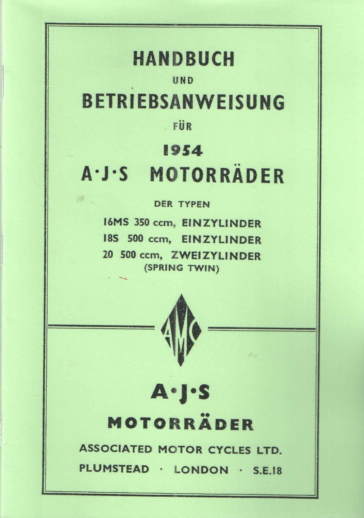 AJS Betriebsanweisung AJS Motorräder 16MS, 18 S , 350 ccm, Einzylinder