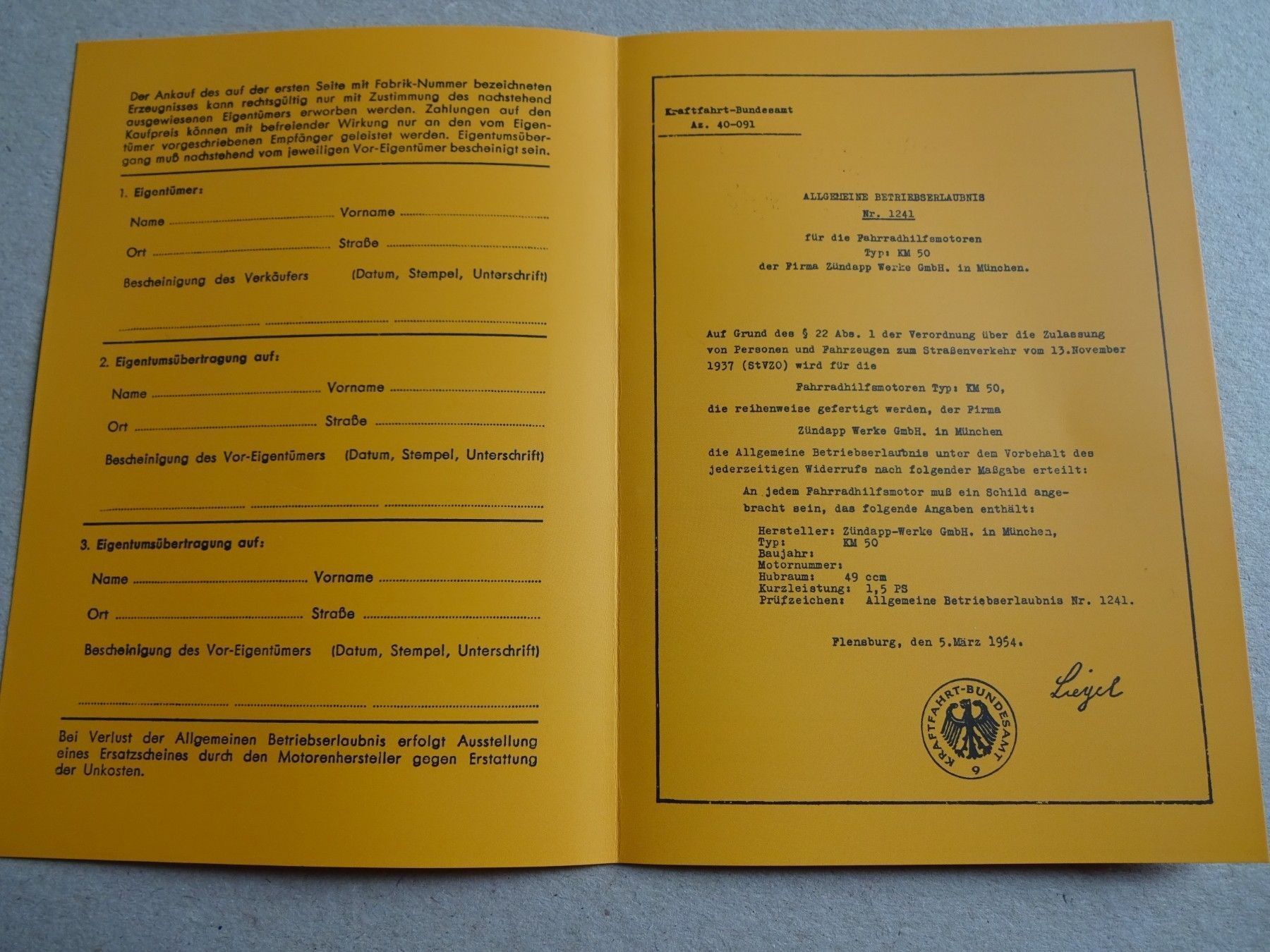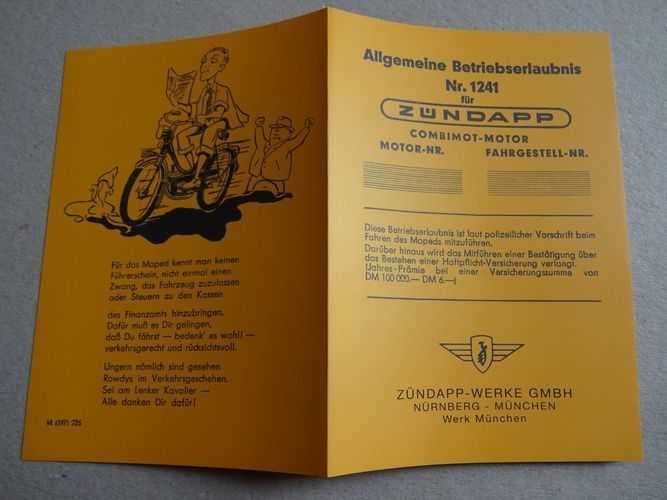 unbenutzte ABE Zündapp Combimot KM 50 Mofa als INFO Datenblatt für Sammlerzwecke Spezielles Karton Papier für Sammler... Mehr